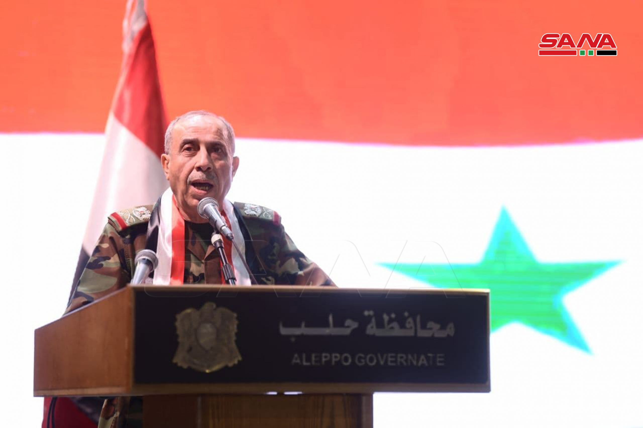El director de la Dirección de Mártires, Heridos y Desaparecidos, el mayor general Bassam Kamel Berri, confirmó en su discurso que Alepo ha hecho historia, gracias a la firmeza del pueblo y de los militares del Ejército Árabe Sirio.