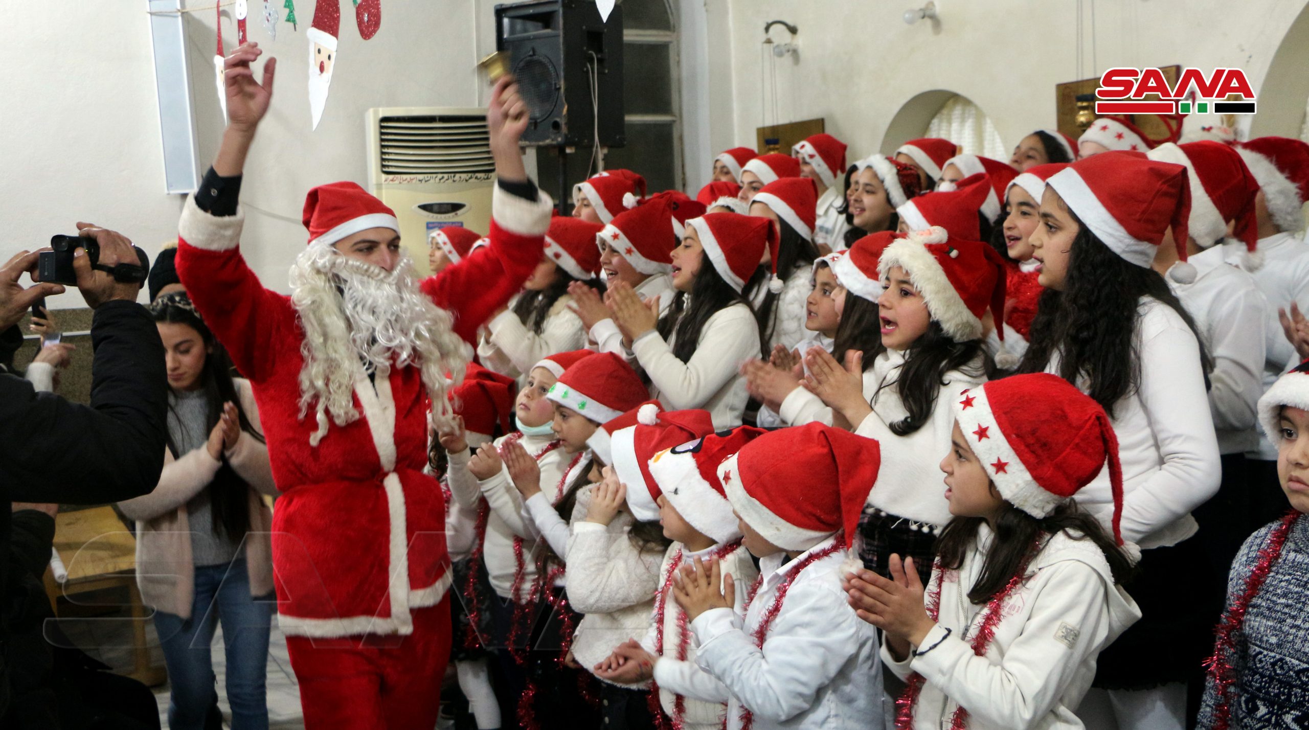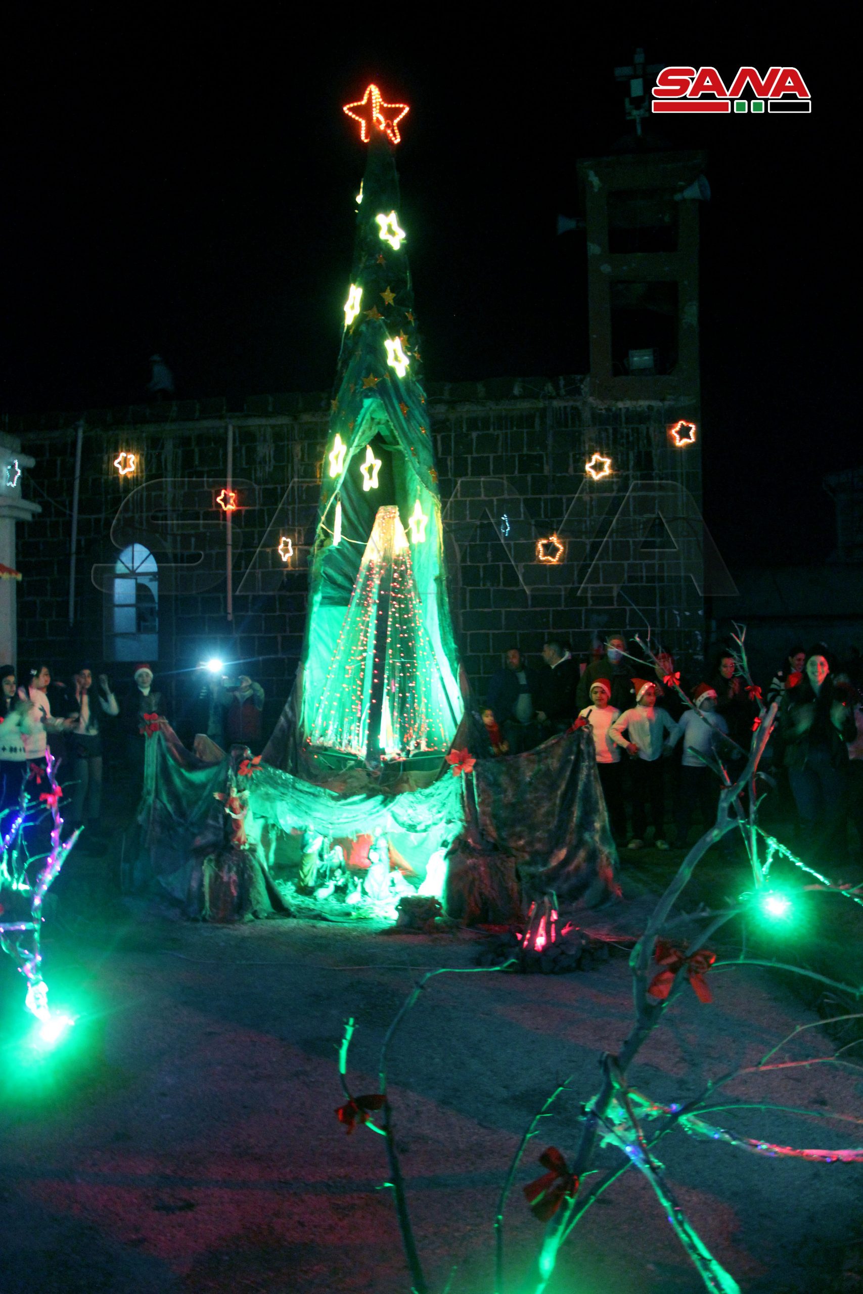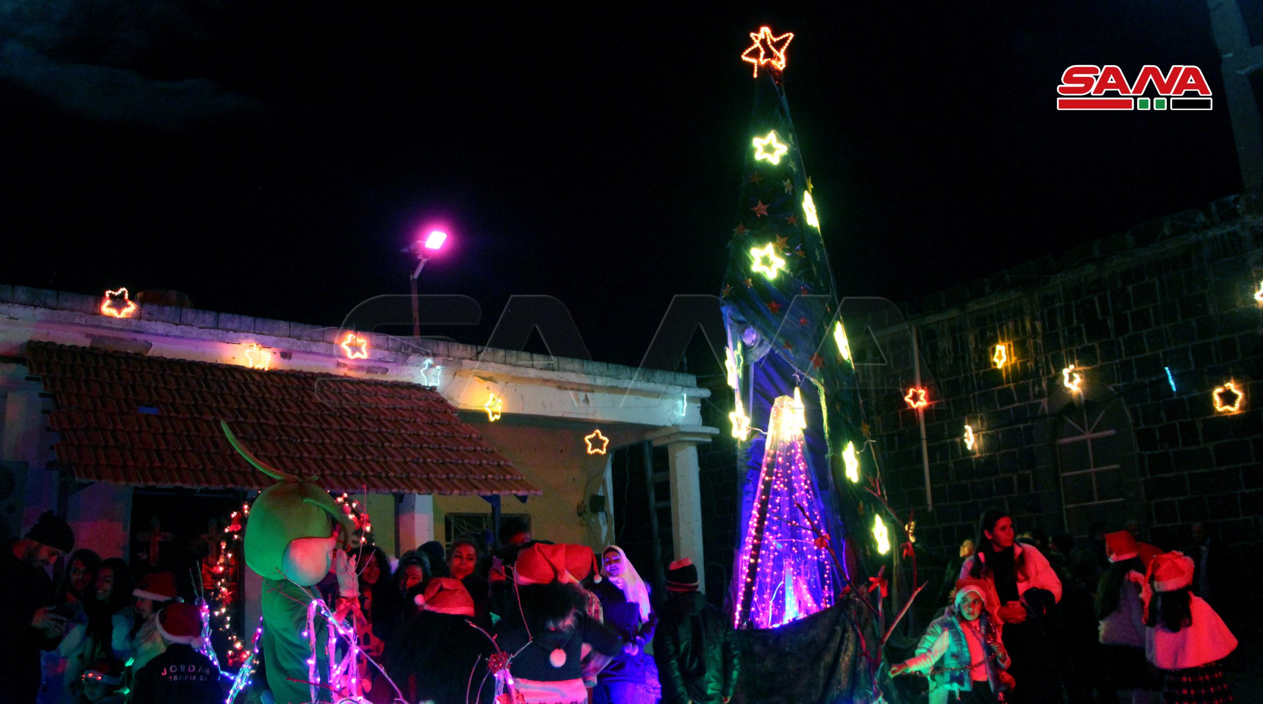 Mientras tanto, en la provincia de Deraa, la Iglesia de San Miguel en la ciudad de Izraa acogió una ceremonia de encender las luces del árbol de Navidad..