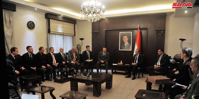 Damasco, 21 dic (SANA) El ministro de Administración Local, Hussein Makhlouf, discutió hoy con Dmitry Sablin, Presidente del Comité de Amistad Parlamentario Ruso-Sirio, las formas de acción conjunta y los esfuerzos para apoyar el regreso de los desplazados y refugiados sirios.