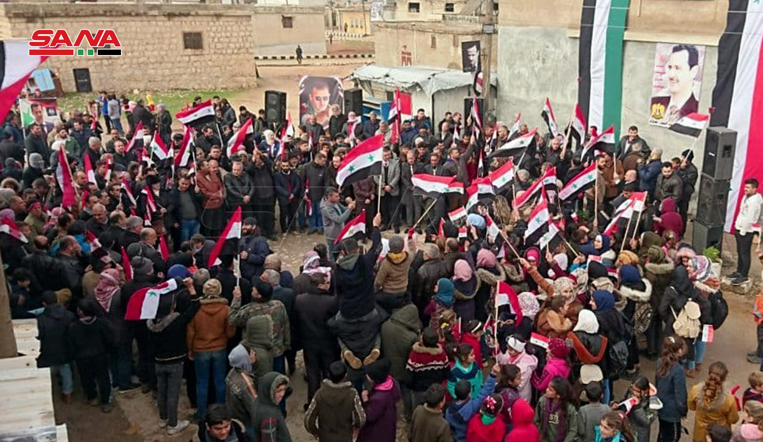 Según informó el corresponsal de SANA, cientos de civiles participaron en una manifestación masiva donde izaron banderas de Siria y pancartas con frases que denunciaron los crímenes de Turquía y sus milicianos.