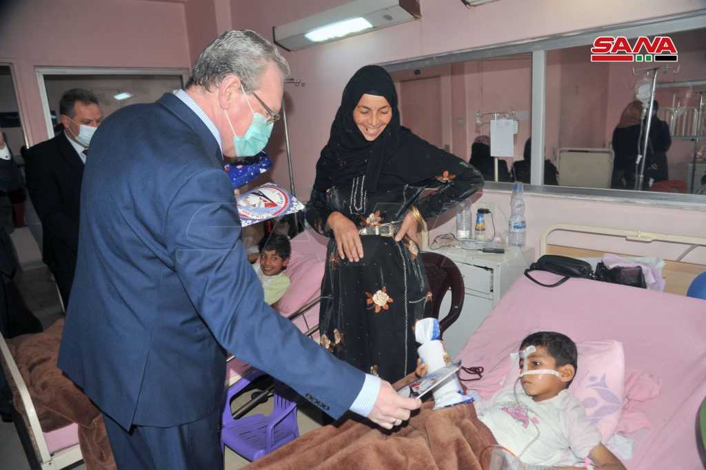 Damasco, 22 dic (SANA) La delegación parlamentaria rusa encabezada por Dimitri Sablin, jefe del Comité de Amistad ruso-sirio en la Duma Estatal de Rusia, realizó este miércoles una visita al Hospital Infantil Universitario de Damasco.