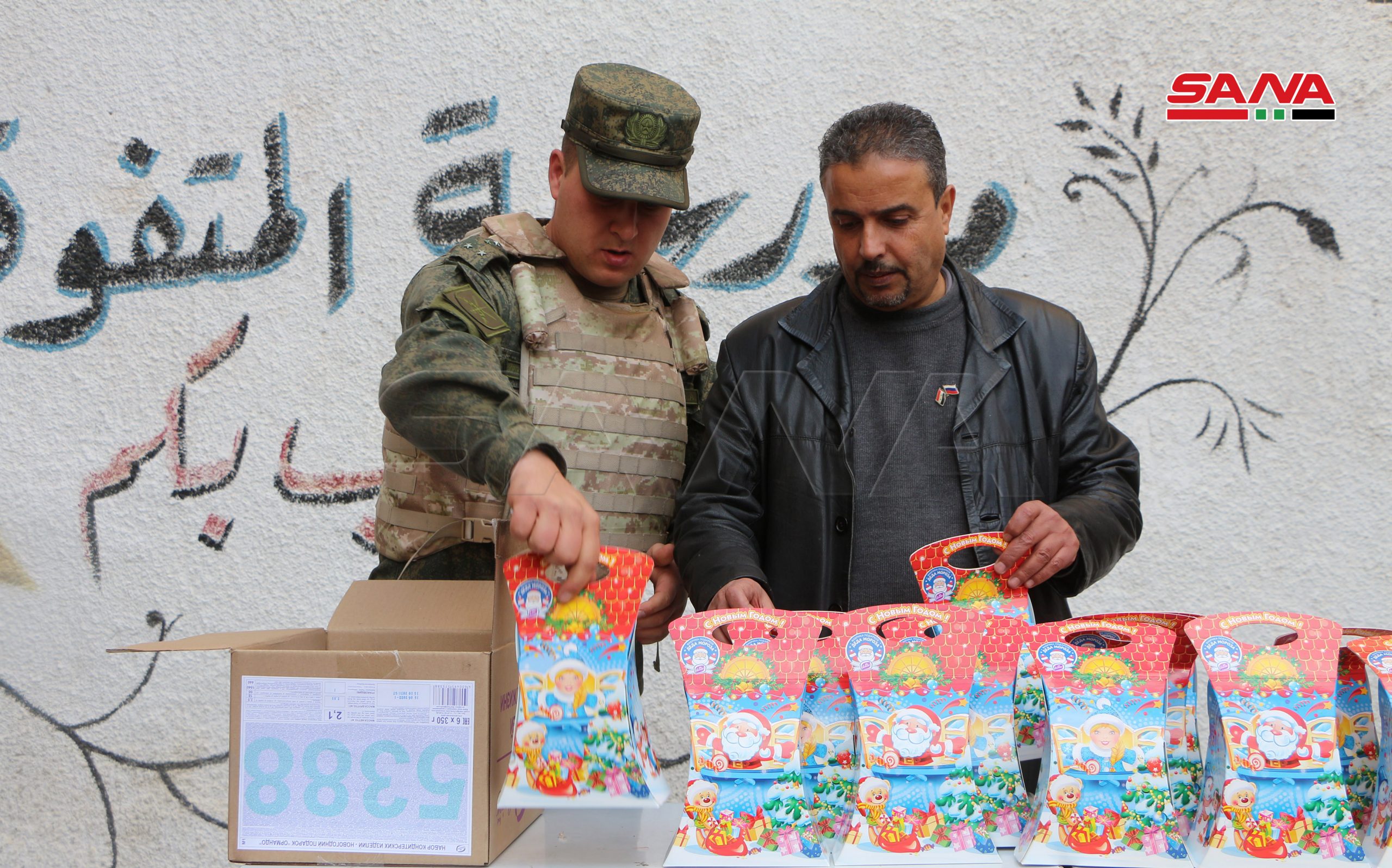 Deraa, 23 dic (SANA) Con motivo de Navidad y Año Nuevo, una delegación del Centro de Reconciliación de Rusia ofreció obsequios a los estudiantes de la provincia de Deraa.