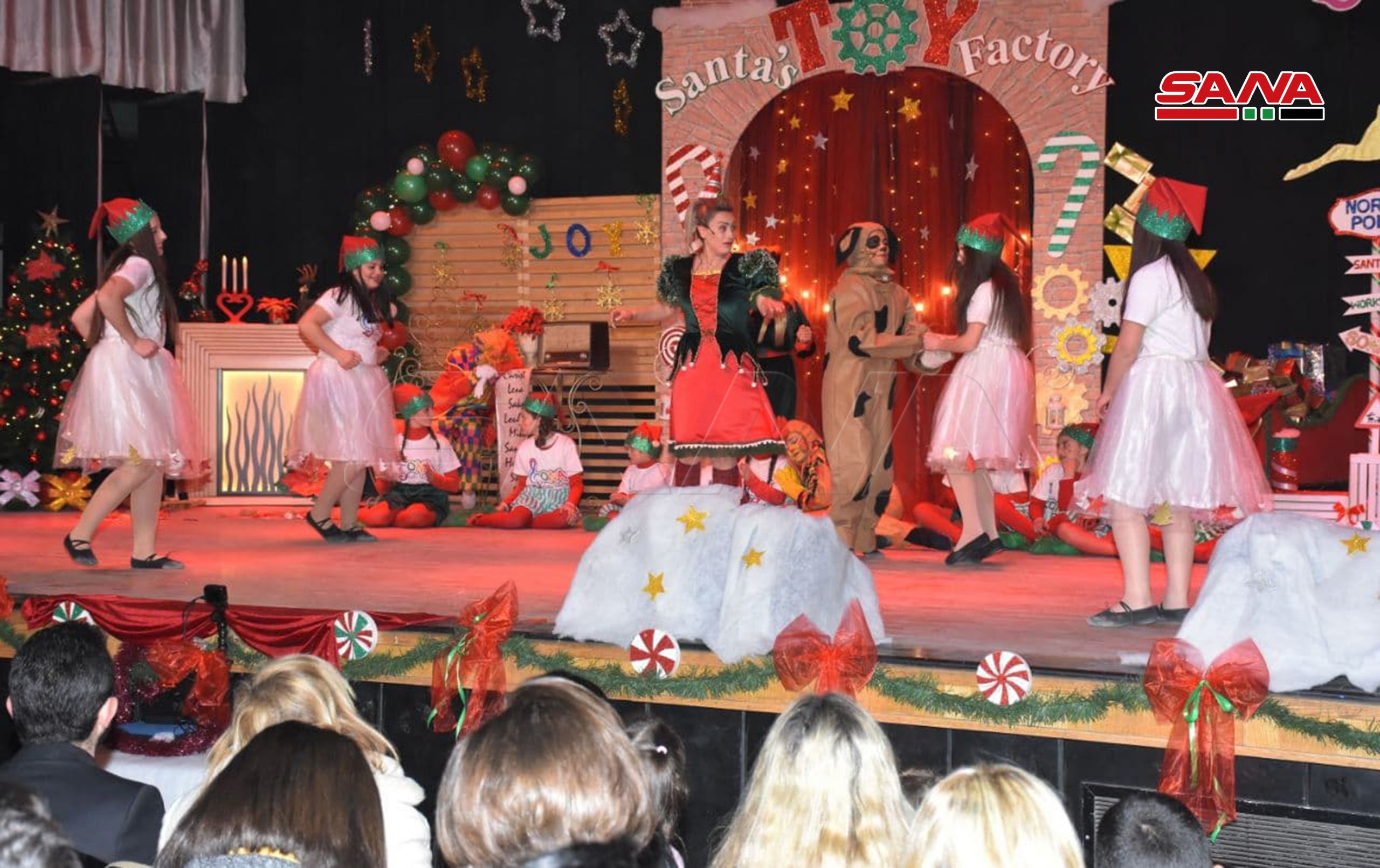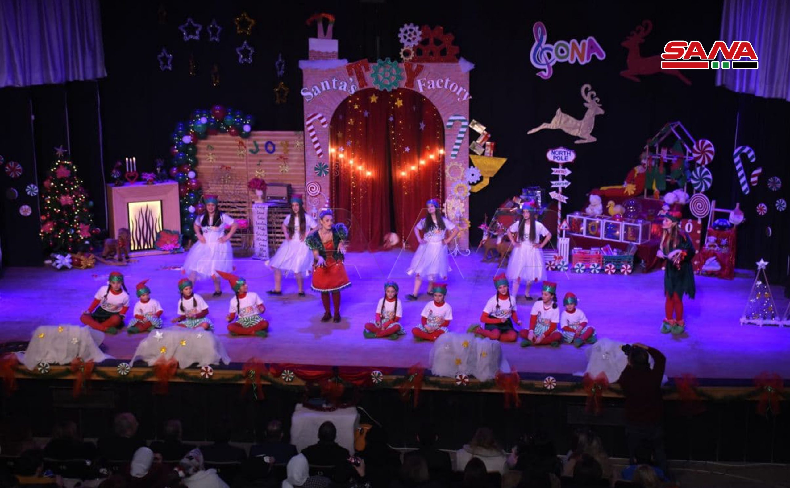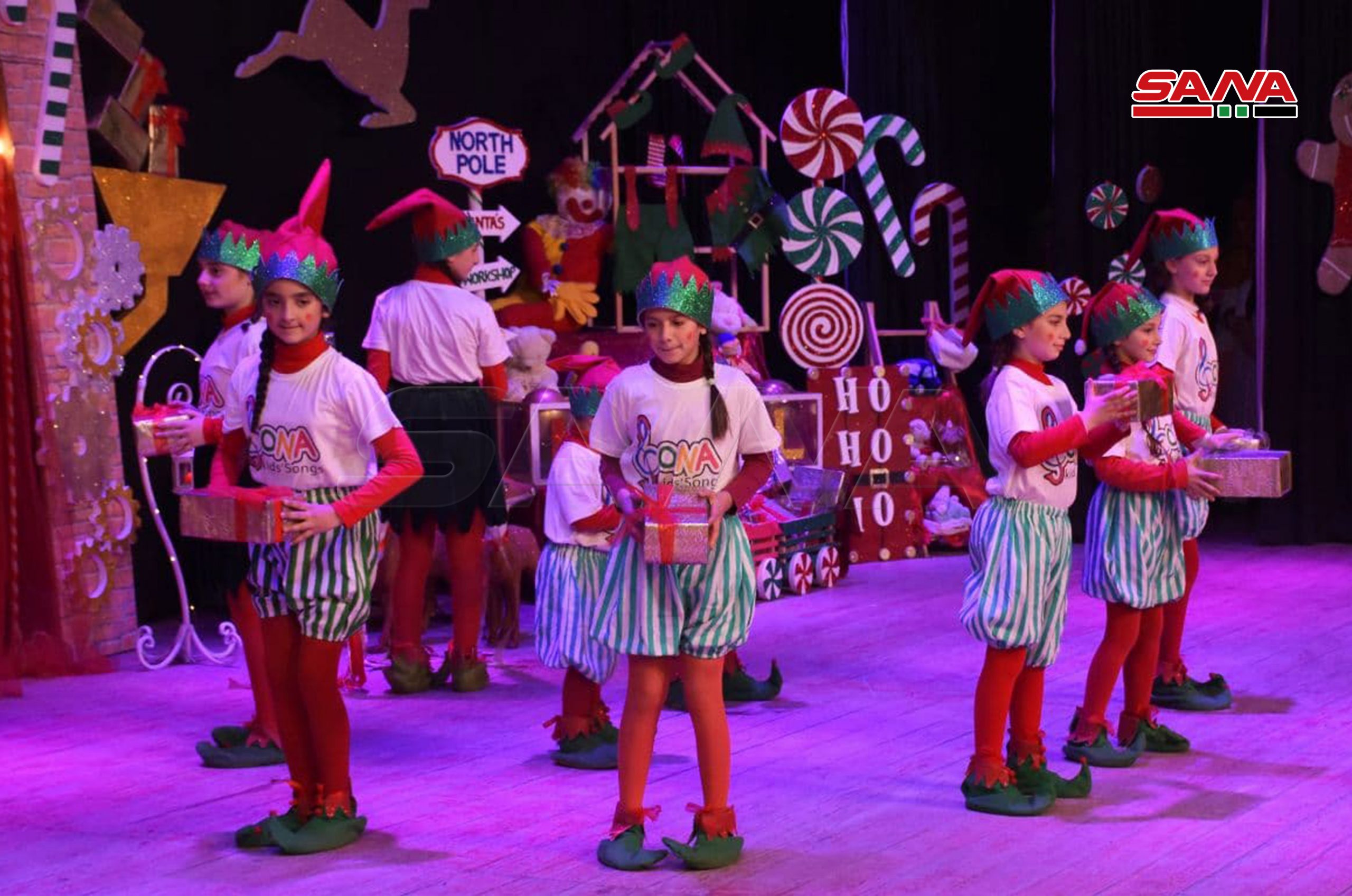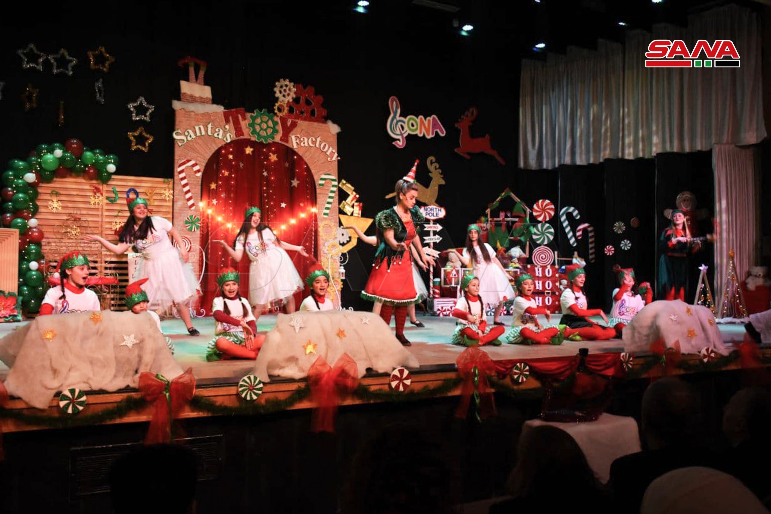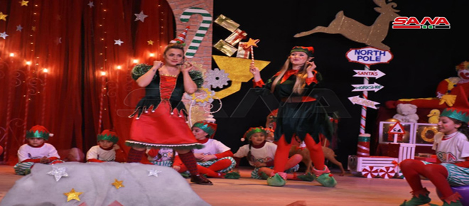 Alepo, 23 dic (SANA) El Teatro del Ministerio de Educación de la ciudad de Alepo acogió una espectáculo artístico bajo el lema “Fábrica Mágica de Papá Noel”.