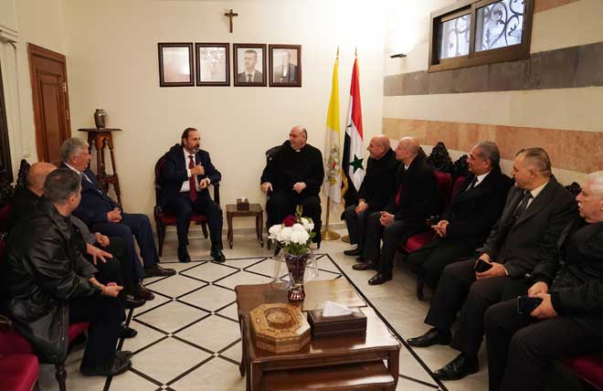En nombre del presidente, el ministro de Asuntos Presidenciales, Mansour Azzam, extendió las felicitaciones a las máximas autoridades cristianas que incluyeron el patriarca de la Iglesia Greco-ortodoxa de Antioquía y todo Oriente, Juan X, el patriarca y jefe Supremo de la Iglesia Siríaco Ortodoxa en el mundo, Mar Ignatius Aphrem II, y al Patriarca Católico Melquita de Antioquía y todo Oriente, Youssef al-Absi.