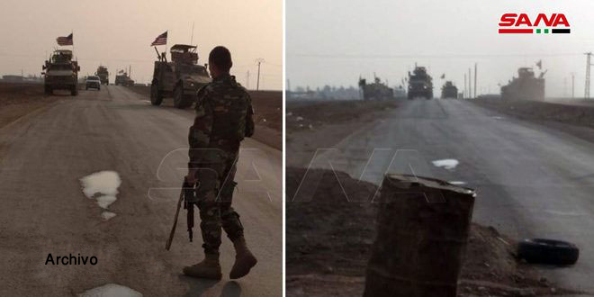 Activistas locales informaron a SANA que la columna del ocupante estadounidense estaba compuesta por cuatro vehículos blindados mientras pasaban por la granja Shweish en el municipio de Tal Tamr, los uniformados sirios los obligaron a dar vuelta atrás.