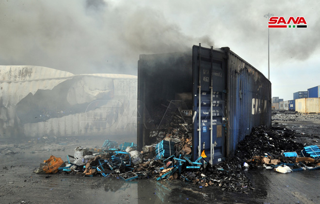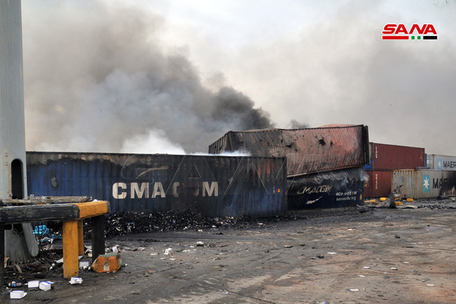 Alrededor de las 3:21 am de este martes, 28 de diciembre de 2021, el enemigo israelí perpetró una agresión aérea con cohetes disparados desde el mar Mediterráneo, contra el patio de contenedores en el puerto comercial de Latakia.