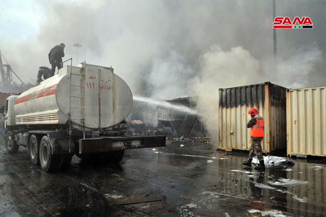 Latakia, 28 dic (SANA) El gobernador de Latakia, Amer Ismail Hilal, anunció que los efectivos del Cuerpo de Bomberos en Latakia lograron extinguir los incendios en el patio de contenedores en el puerto comercial de la provincia siria Latakia, en la costa siria, que fue blanco de una agresión israelí.