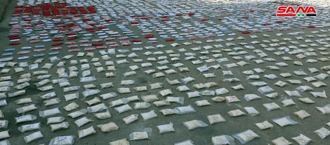 “Tras continuo seguimiento y varias emboscadas en la franja fronteriza adyacente al territorio jordano, se frustró un intento de contrabando de grandes cantidades de drogas estimadas en cientos de kilogramos de hachís y decenas de miles de píldoras de captagón que iban a ser contrabandeadas a Jordania, informaron fuentes a la agencia SANA