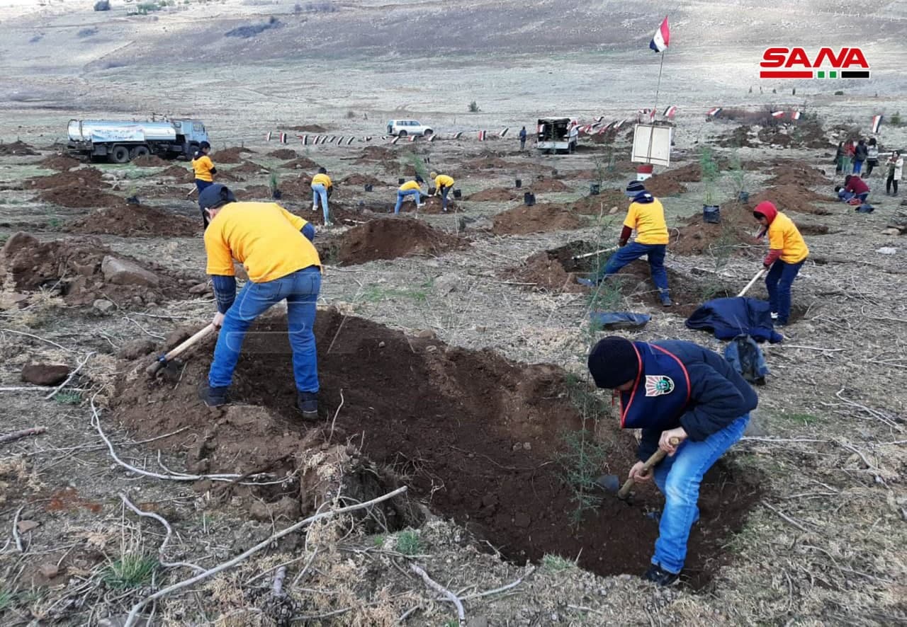 En la provincia de Sweida en el sudoeste del país, arrancó una campaña en la que participan voluntarios y representantes de organizaciones no gubernamentales y juveniles para la siembra de 5 hectáreas con unas 5.000 plantas de ciprés, pino y encino.