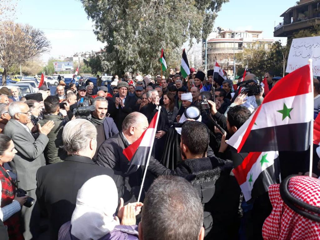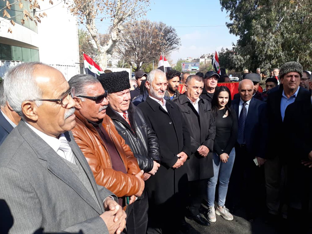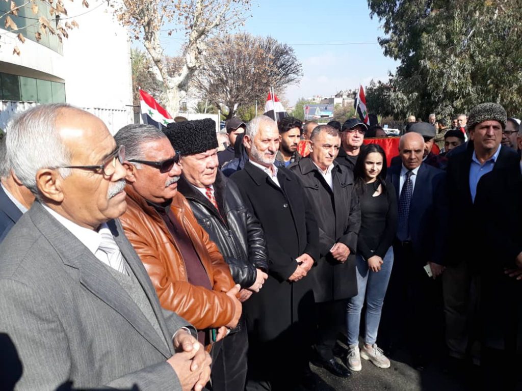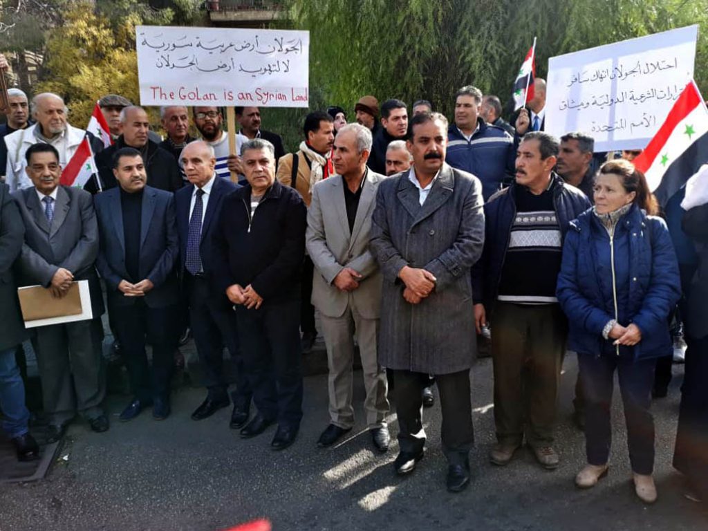 Damasco, 05 ene (SANA) Algunos patriotas del Golán sirio ocupado se congregaron este miércoles frente a la Misión del Comité Internacional de la Cruz Roja (CICR) en Damasco para rechazar las prácticas inhumanas del ocupante sionista y su intención de ampliar sus asentamientos.