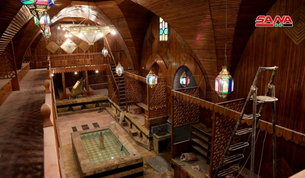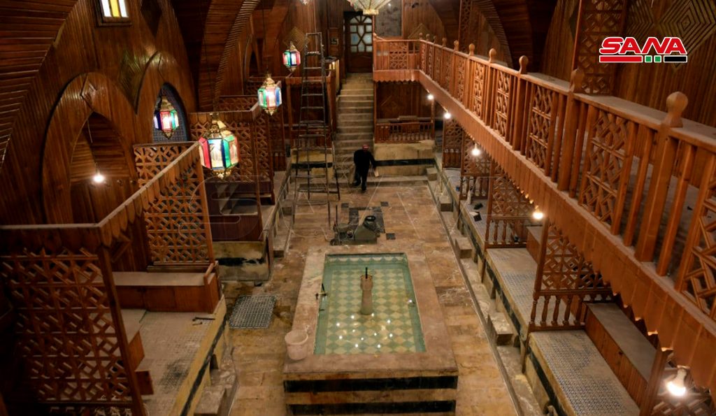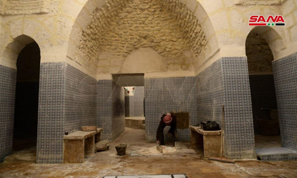 Alepo, 05 ene (SANA) Los trabajos de restauración del baño árabe “Hammam El Nahasin” situado en el casco antiguo de Alepo están por terminar y borrar la huella que dejó el terrorismo en este lugar histórico.