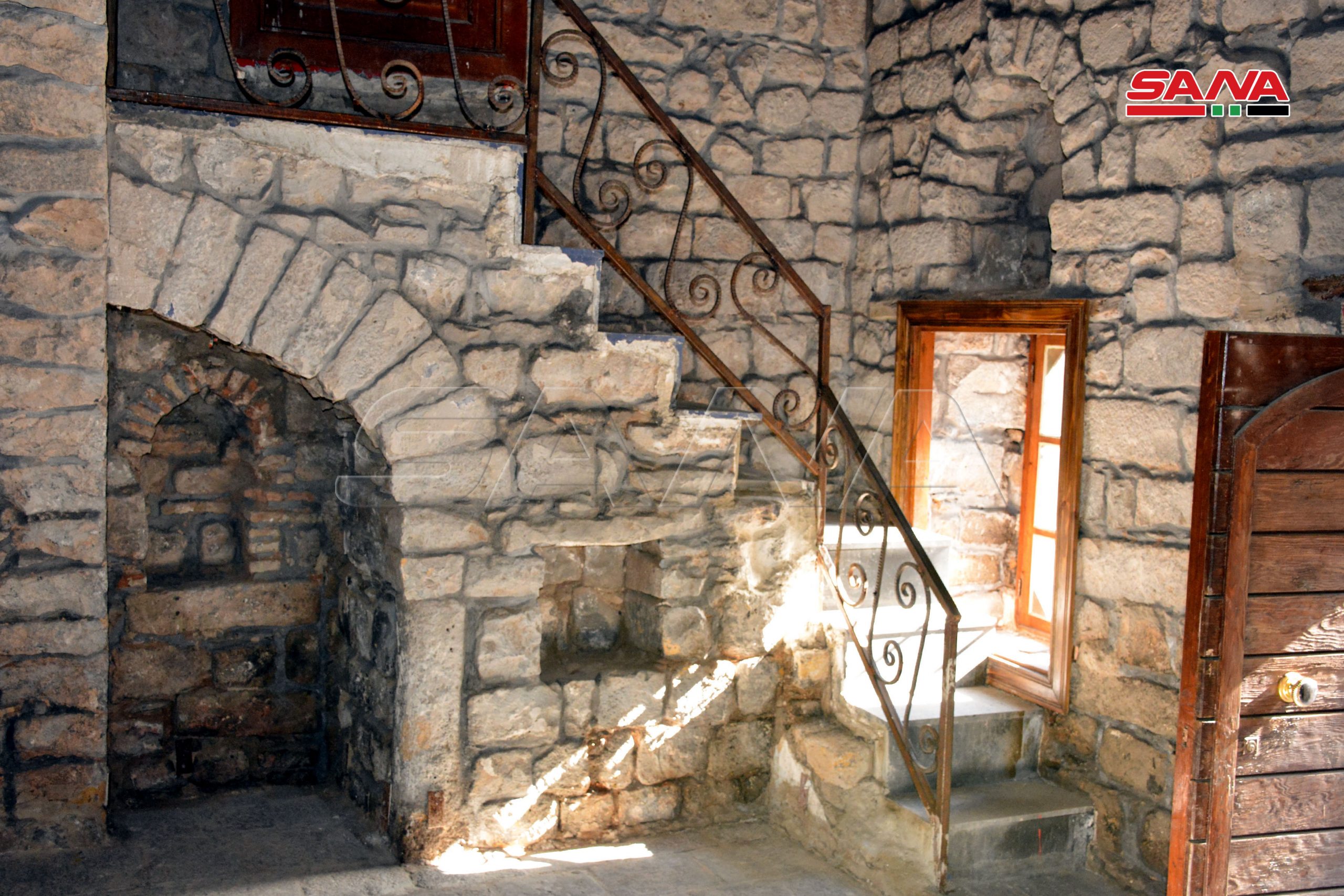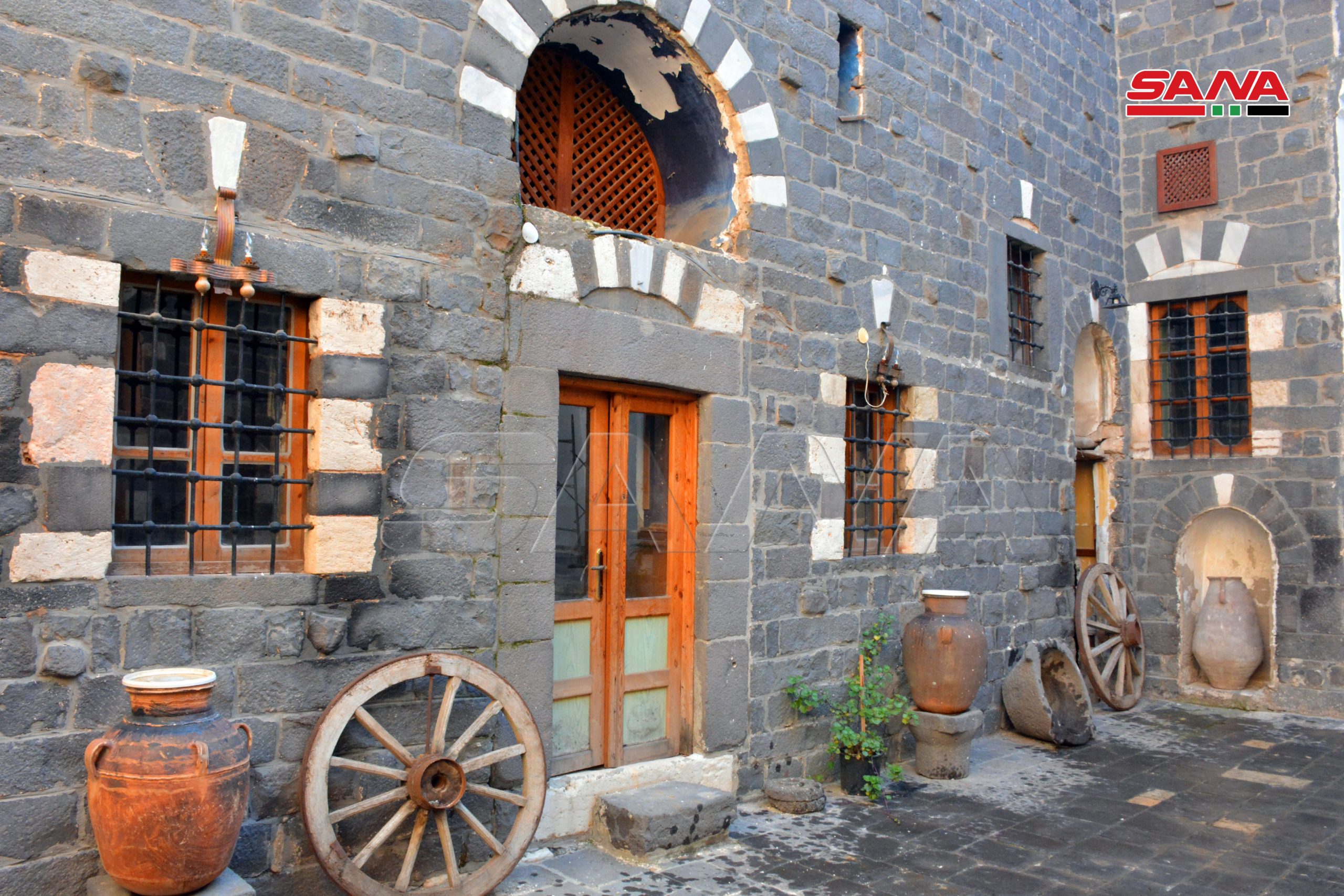 El palacio se encuentra en la capital provincial de Homs con una superficie de 600 metros cuadrados y está construido con piedra de basalto negro.