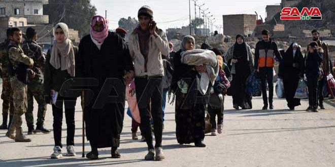 Hasakeh, 24 ene (SANA) Alrededor de 3500 familias desplazadas de los barrios del sur de la ciudad de Hasakeh llegaron a los centros de alojamiento temporal en el centro de la urbe a través de los corredores seguros abiertos por el Ejército Árabe Sirio.