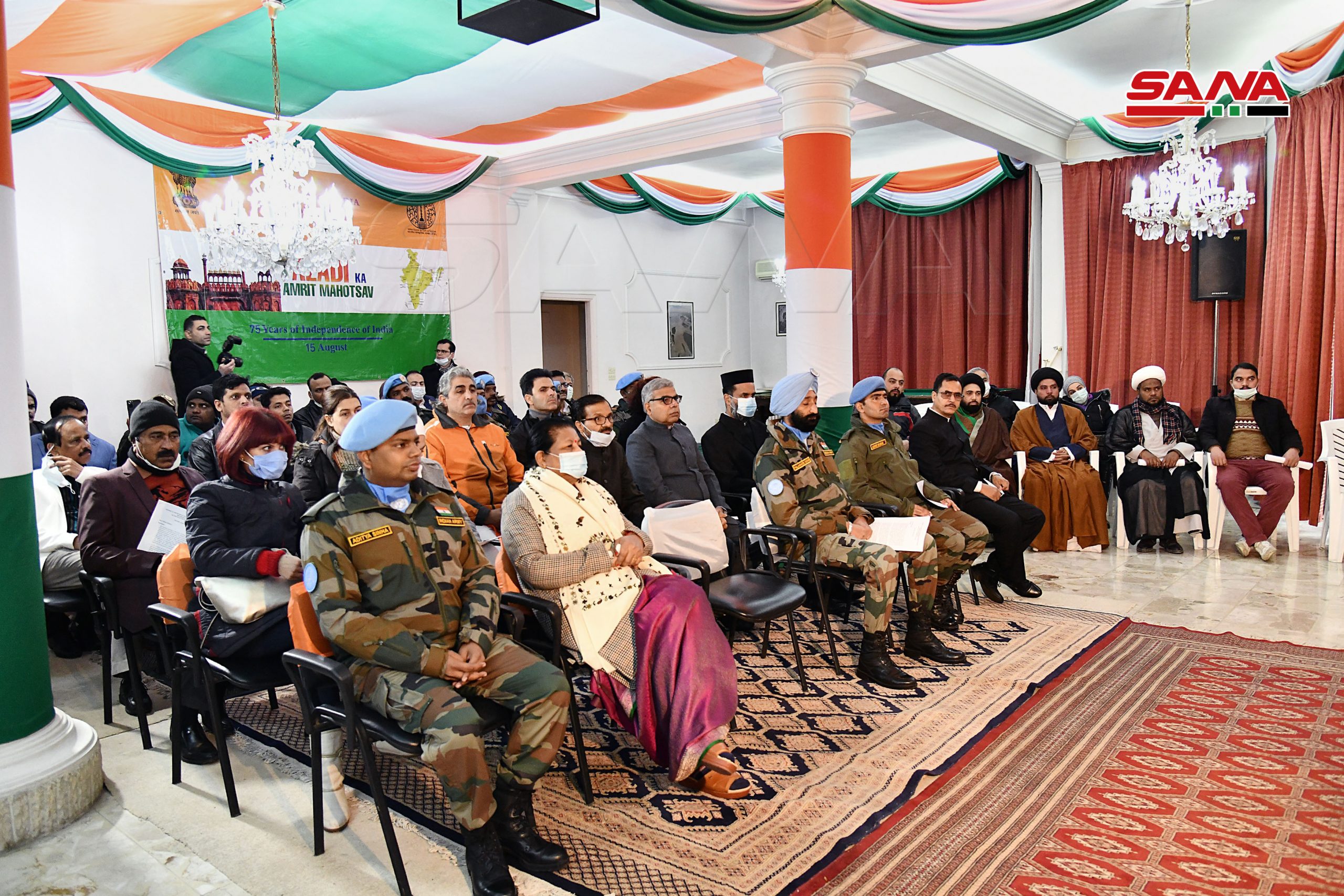 “Nos orgullecen las relaciones de amistad y cooperación entre los dos países, y durante los próximos meses, estas relaciones serán testigo de mayor desarrollo en varios niveles”, dijo el diplomático en declaraciones a SANA durante una ceremonia celebrada por la Embajada de la India en Damasco con motivo del 73 aniversario del Día de la República.