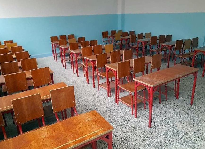 Por su parte, la supervisora del complejo educativo en Douma, Noha al-Najjar, señaló que la escuela secundaria está dotada de mobiliario escolar, calefactores, proyector e impresora.