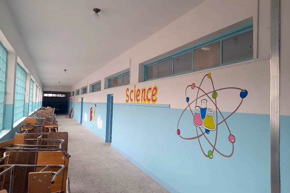 Según al-Najjar, la escuela consta de 37 aulas y 7 salas administrativas, además de un laboratorio y una biblioteca.