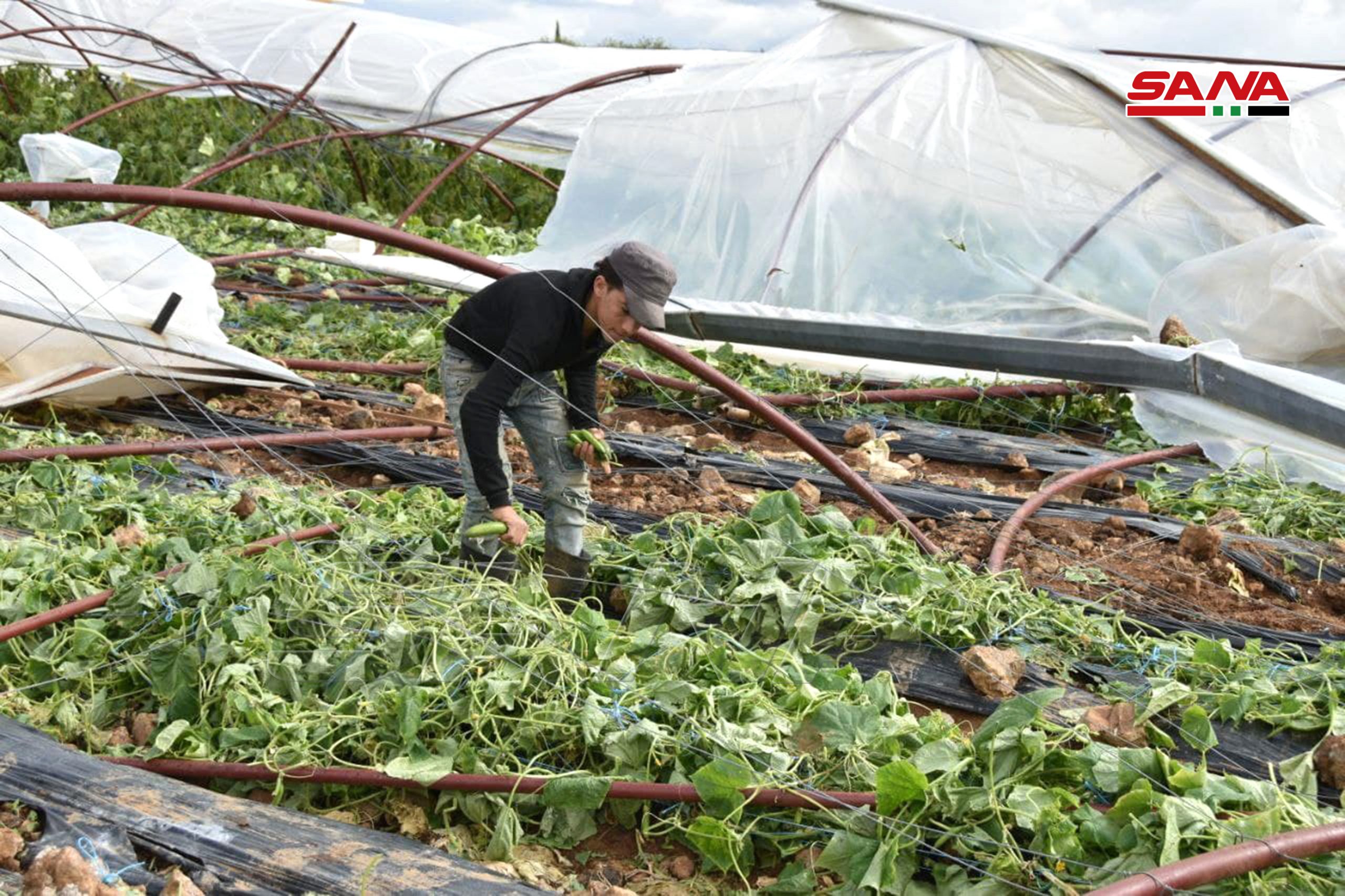 El director del Fondo de Mitigación de Desastres Naturales en la Dirección de Agricultura, Haider Shaheen, explicó que las cifras preliminares indican que 35 invernaderos sembrados con pepinos y frijoles han sido dañados, y los daños oscilan entre el 50 al 100 por ciento.
