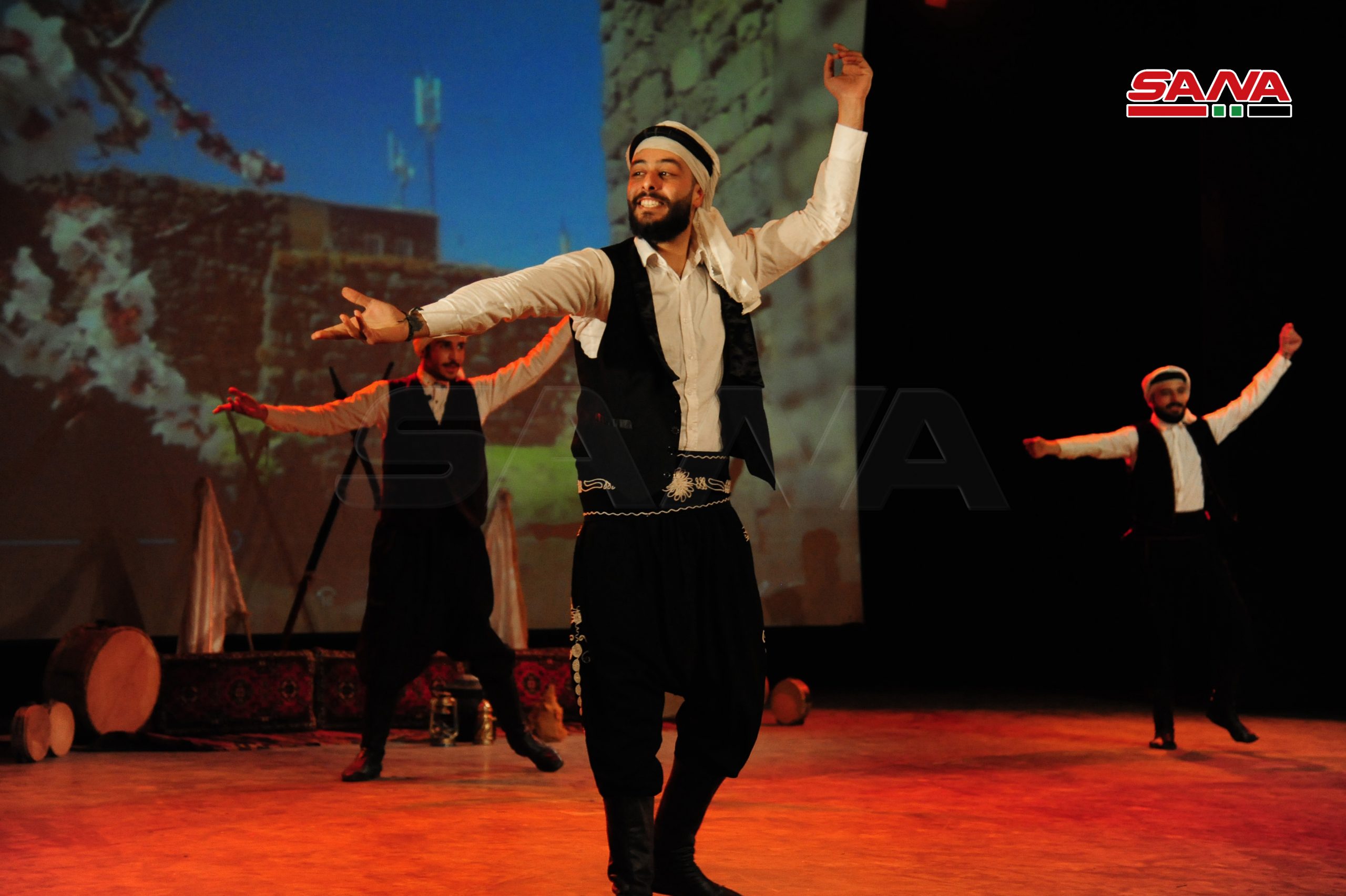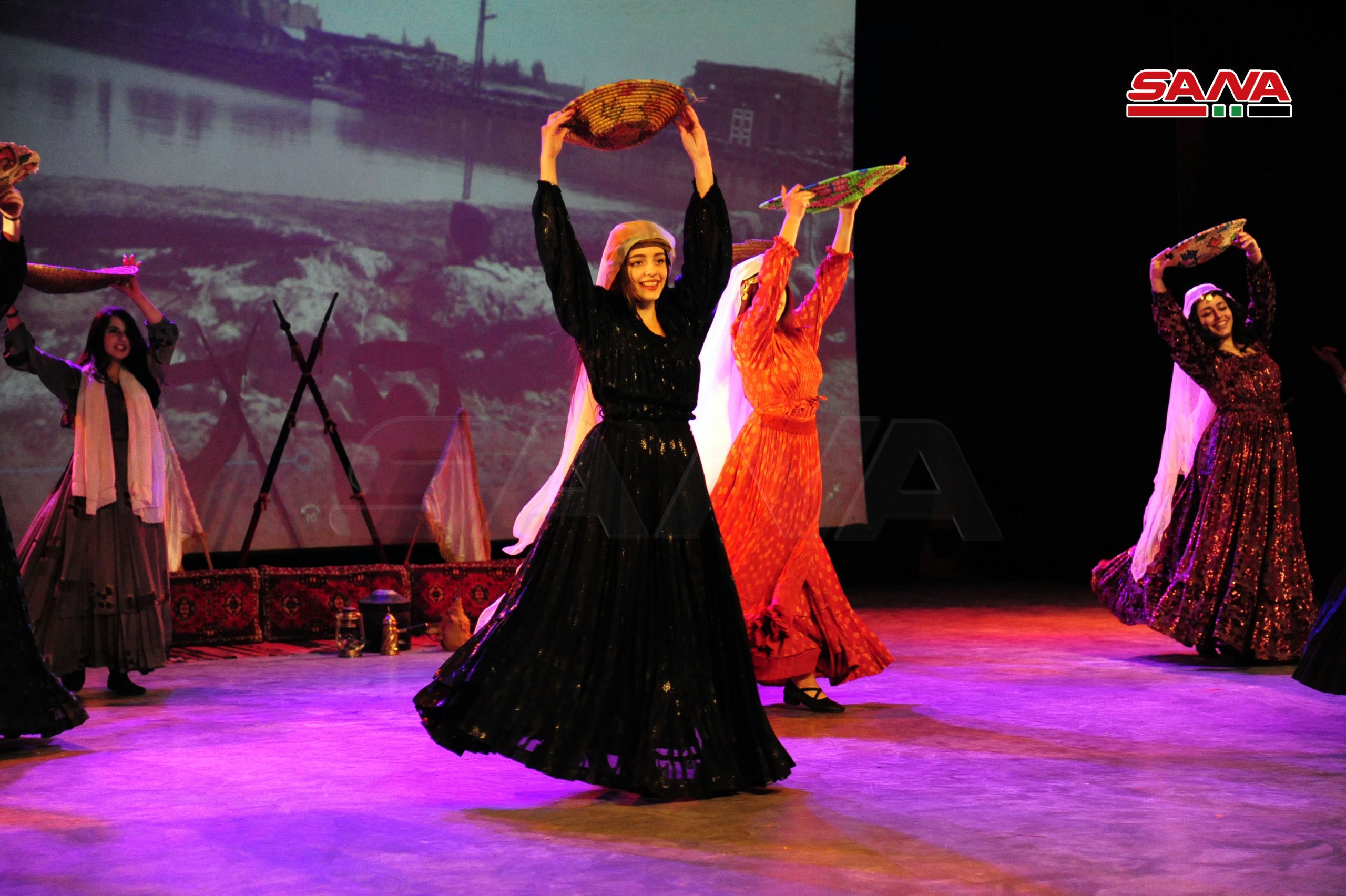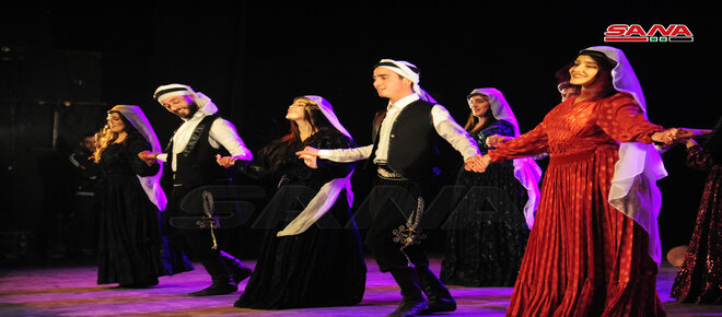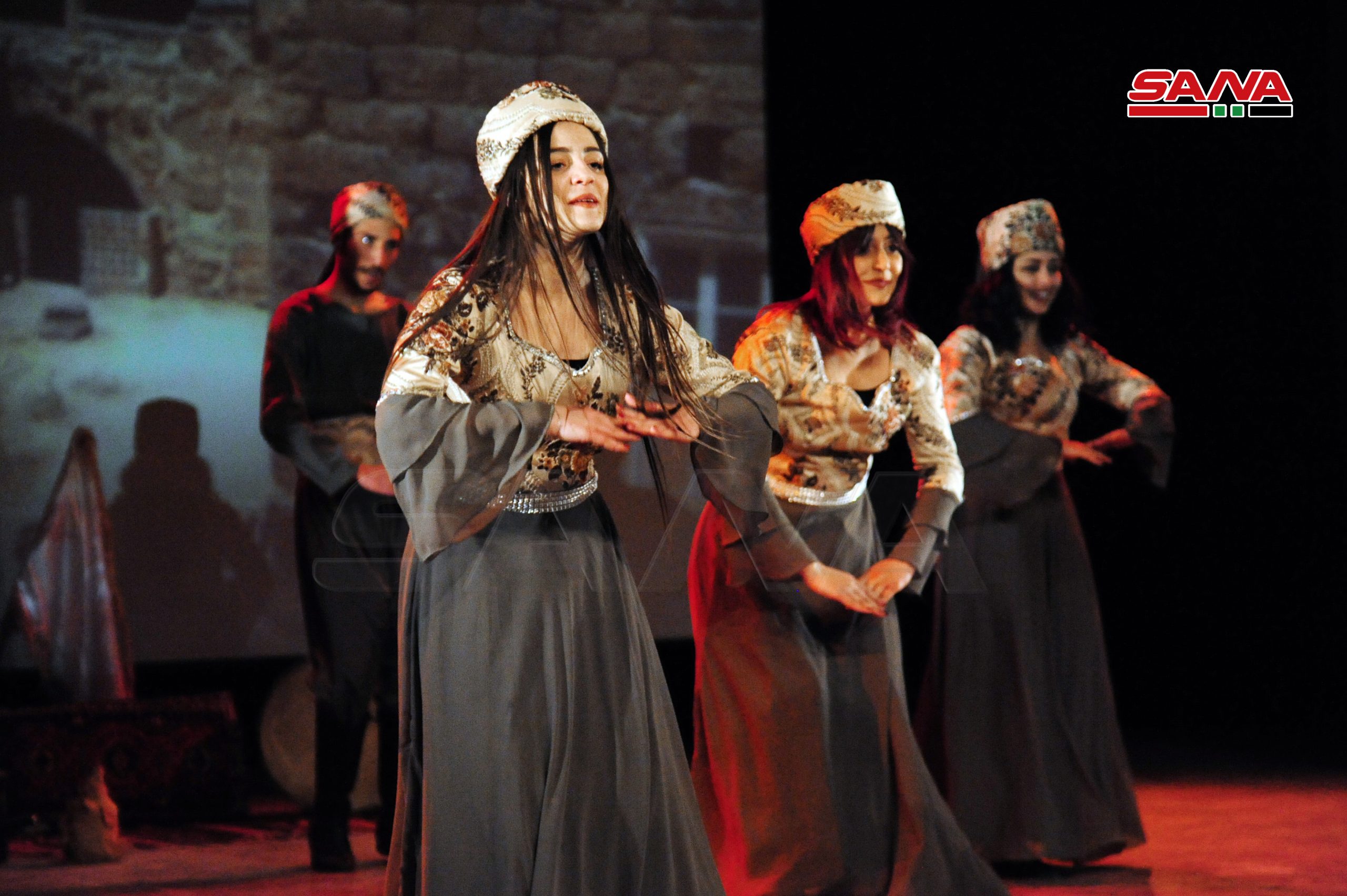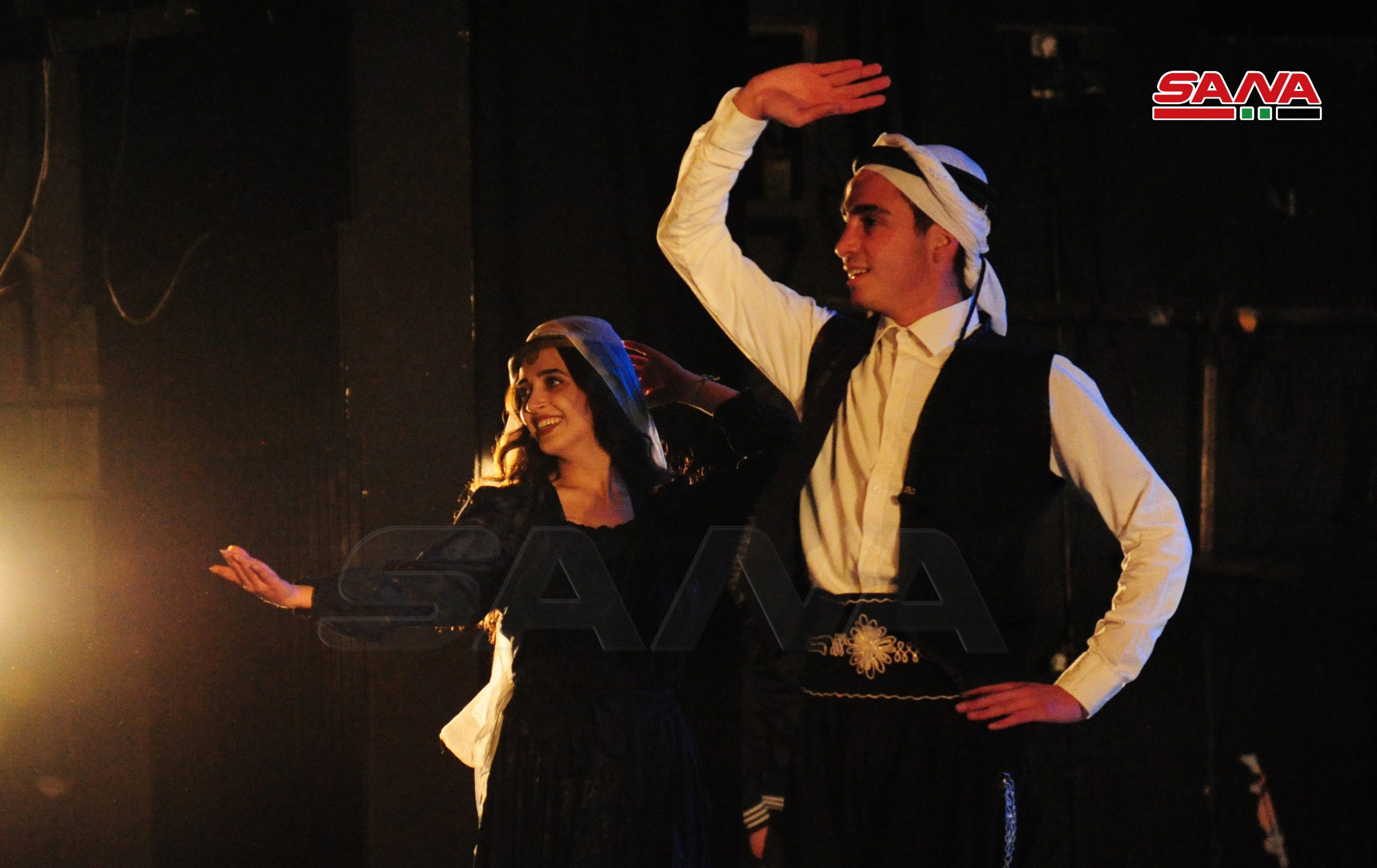 La banda de baile Kanza interpretó en el teatro Al-Hamraa en Damasco varios bailes reprentativos de la mayoría de las provincias sirias combinadas con cantos populares y patrimoniales.