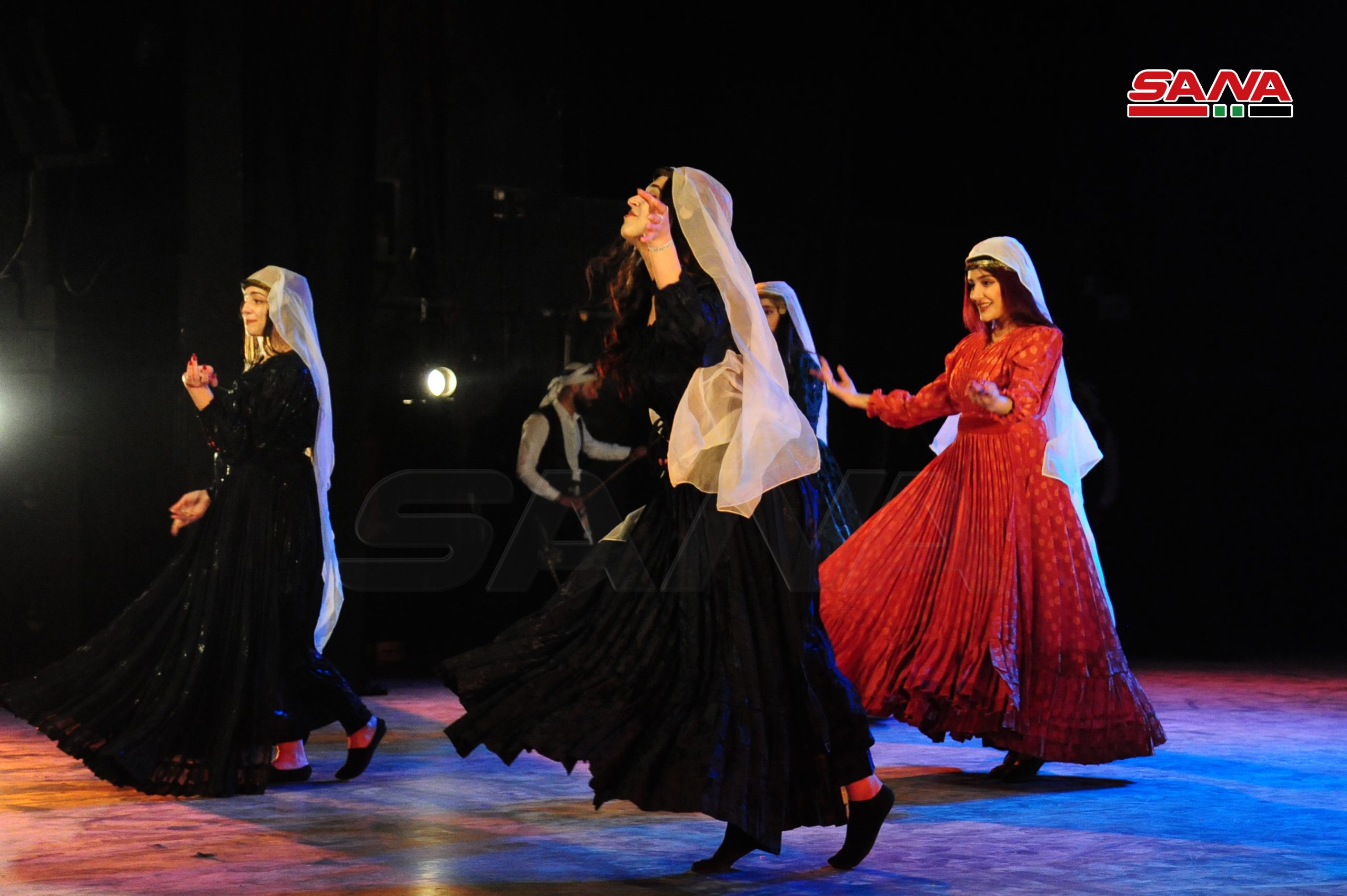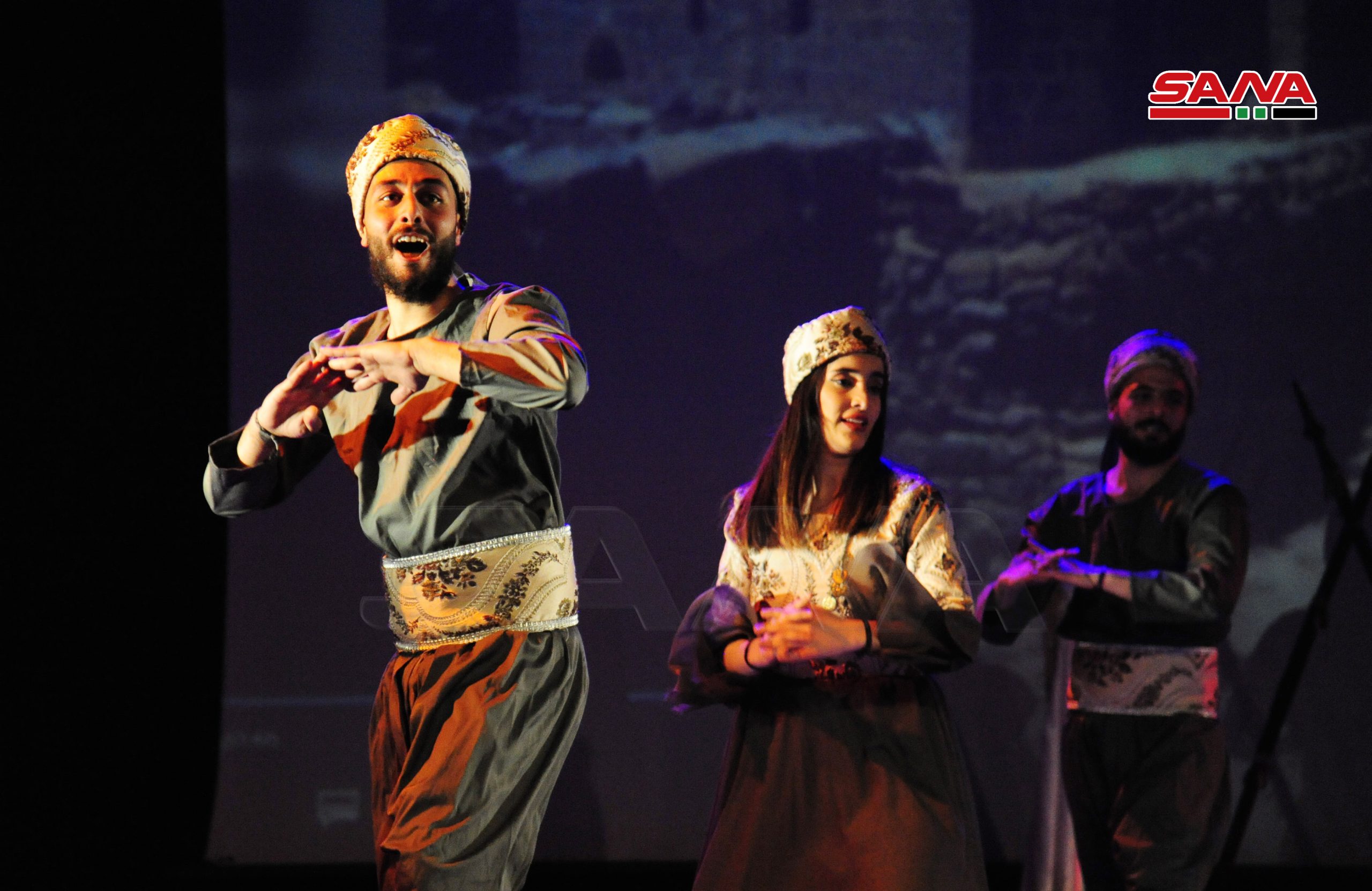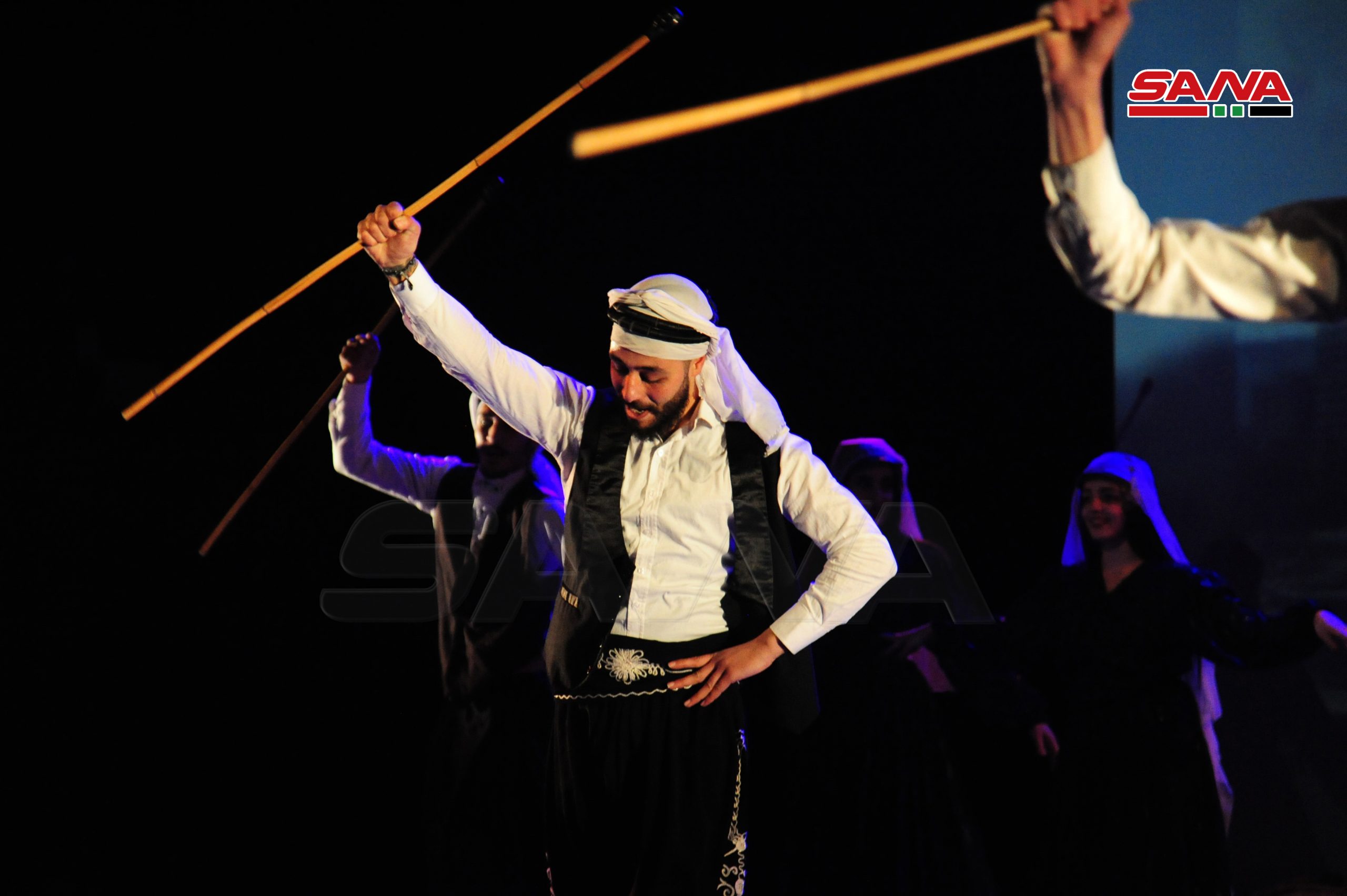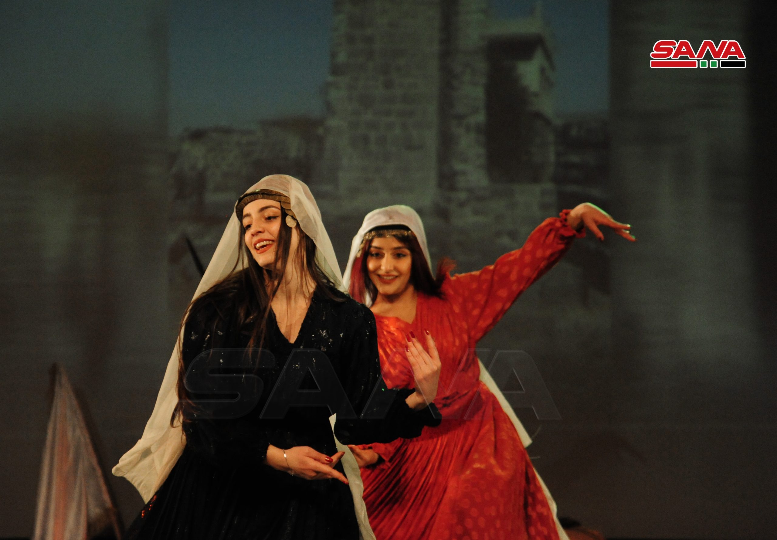 La banda de baile Kanza interpretó en el teatro Al-Hamraa en Damasco varios bailes reprentativos de la mayoría de las provincias sirias combinadas con cantos populares y patrimoniales.
