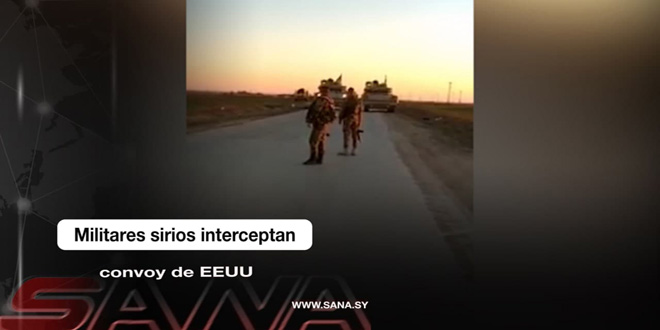 Hasakeh, 13 feb (SANA) Hasakeh, 13 feb (SANA) Pobladores y militares del ejército sirio expulsaron hoy un convoy de las fuerzas de ocupación estadounidense en las cercanías de la localidad de Tal Dahab en la provincia nororiental siria de Hasakeh.