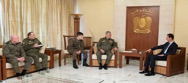 Damasco, 15 feb (SANA) El presidente Bashar al-Assad recibió al ministro de Defensa ruso, Sergei Shoigu, quien arribó este martes a Siria al frente de una delegación militar de alto rango.