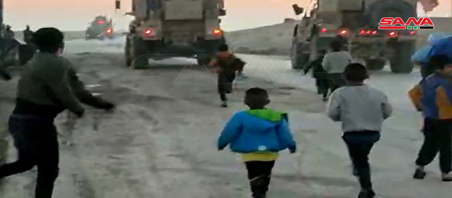 Hasakeh, 20 feb (SANA) Los residentes de la localidad de Tal Shamiran en la provincia de Hasakeh, expulsaron hoy a un convoy de vehículos militares del ocupante estadounidense y su milicia separatista Fuerzas Democráticas de Siria (FDS) que intentó cruzar por la aldea.