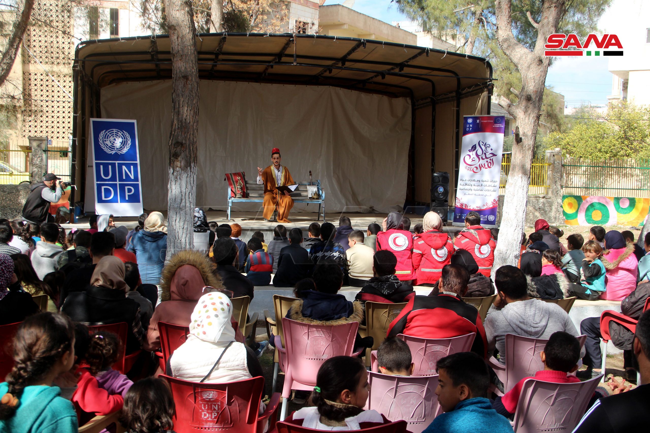 Deraa, 23 feb (SANA) Como parte del proyecto encaminado a reforzar la cohesión social que organiza el Programa de las Naciones Unidas para el Desarrollo “PNUD” comenzó la iniciativa del cuentacuentos (Hakawati en árabe) en el parque al-Matar en el centro de la ciudad sureña de Deraa.