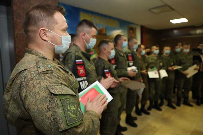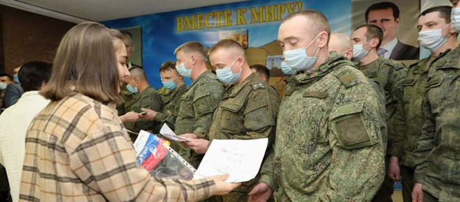 Damasco, 26 feb (SANA) La niña rusa Diana Nikitina, de 14 años de edad, oriunda de la ciudad de Nadim en el noreste de Rusia, visitó el Cuartel General de las fuerzas rusas que operan en Siria donde entregó a los soldados rusos allí presentes mensajes de felicitación y tarjetas de amor que ella y sus compañeros prepararon en Moscú con motivo del Día de los Defensores de la Patria.