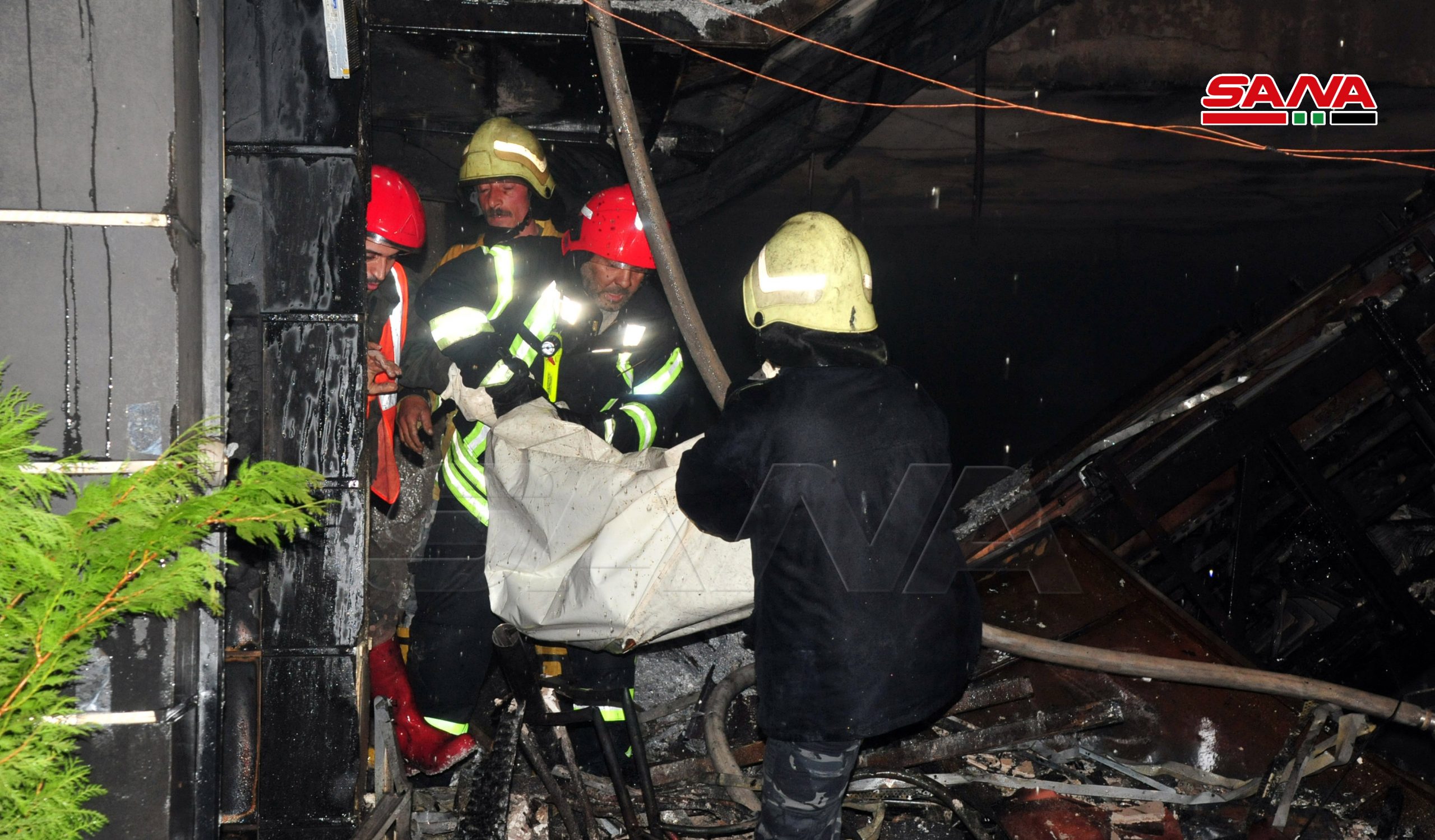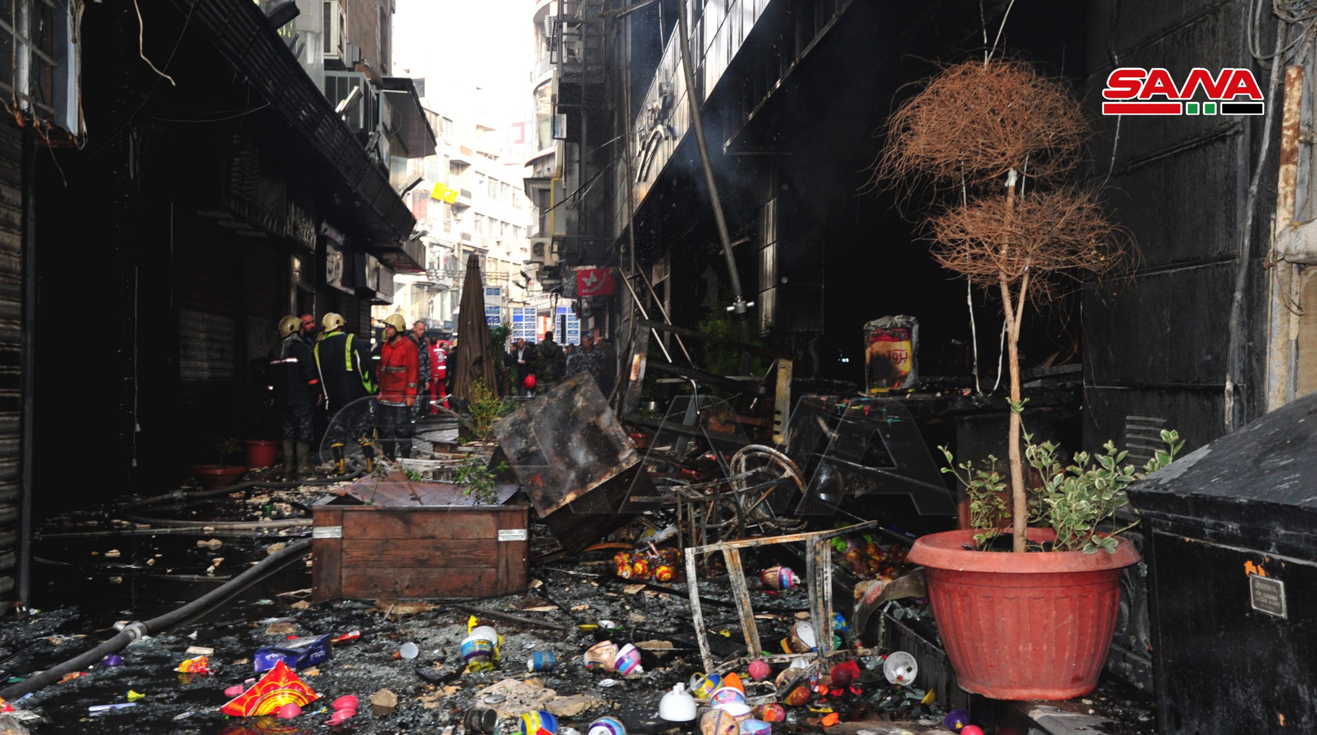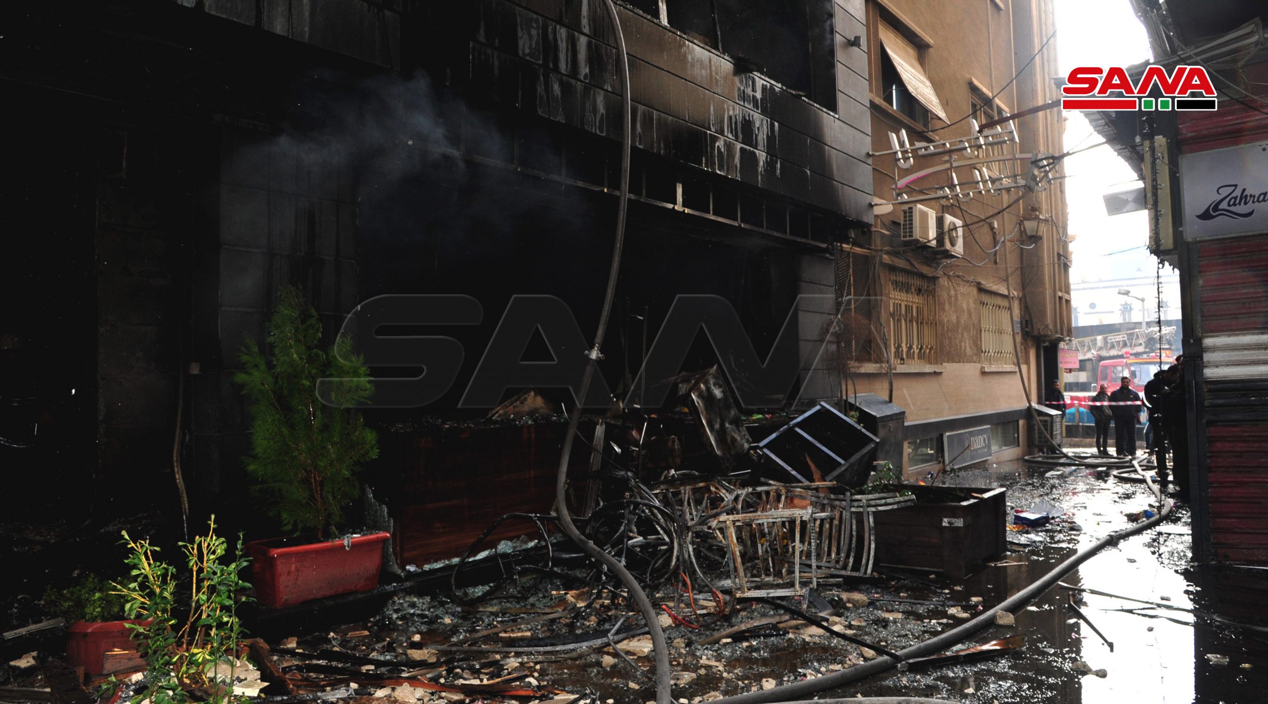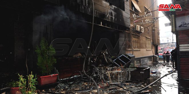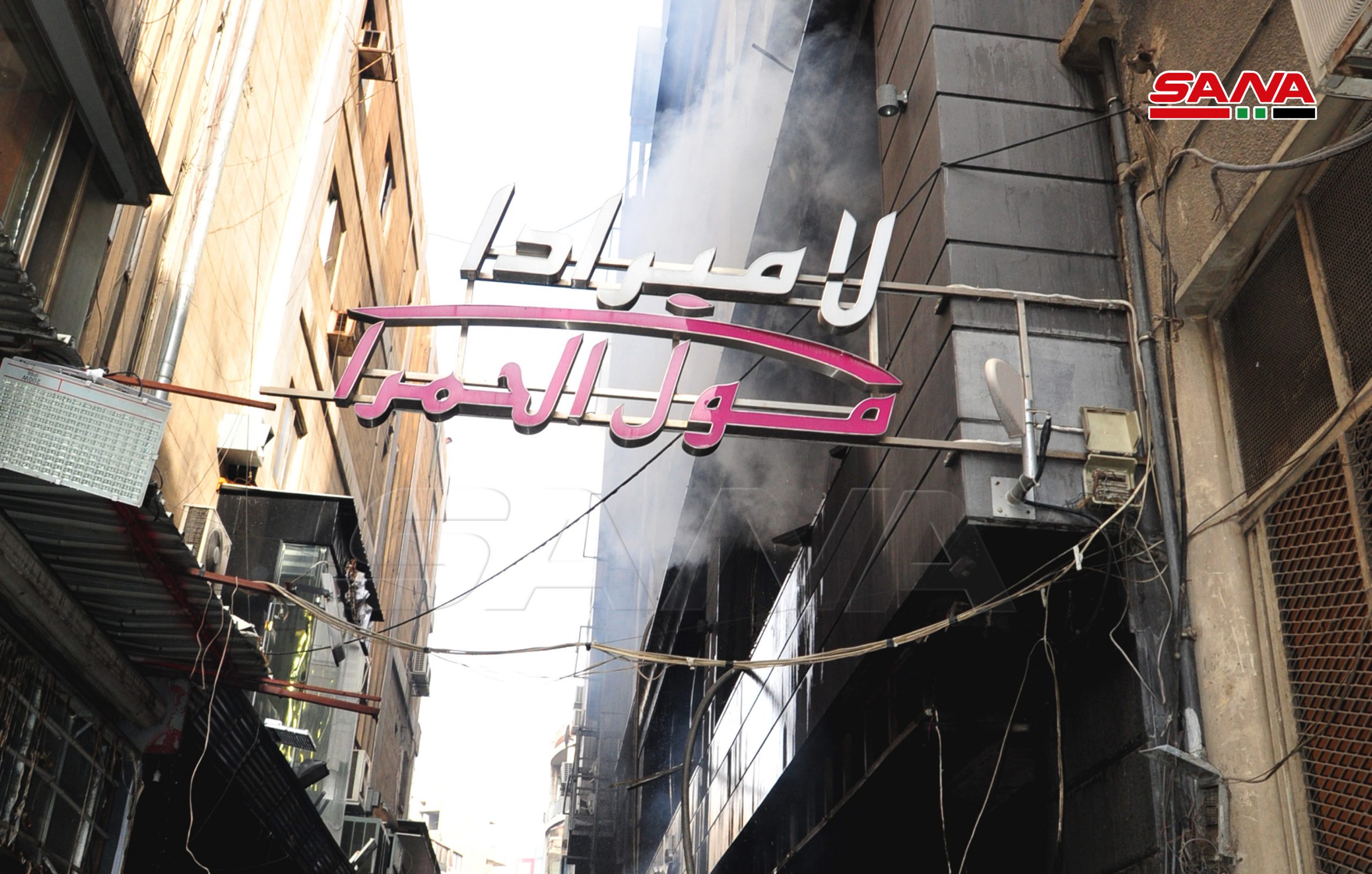 Damasco, 01 mar (SANA) Los cuerpos de bomberos de Damasco lograron este martes extinguir un gran incendio que dejó quemado y destruido a todo el edificio que alberga el centro comercial La Mirada en la calle Al-Hamra de la ciudad.