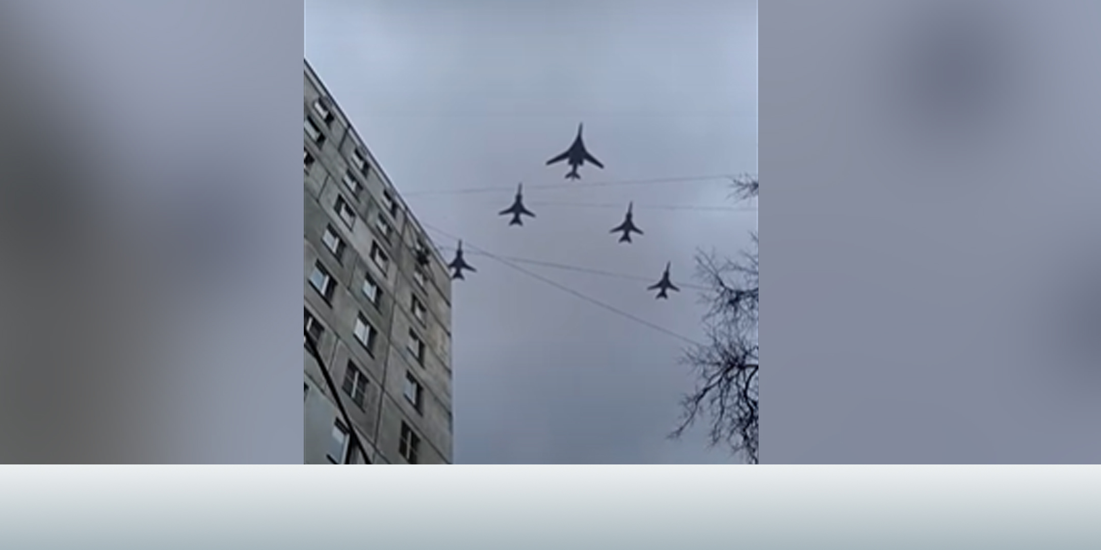 Imagen de un desfile militar usada como si fuera una redada de la aviación rusa contra Ucrania