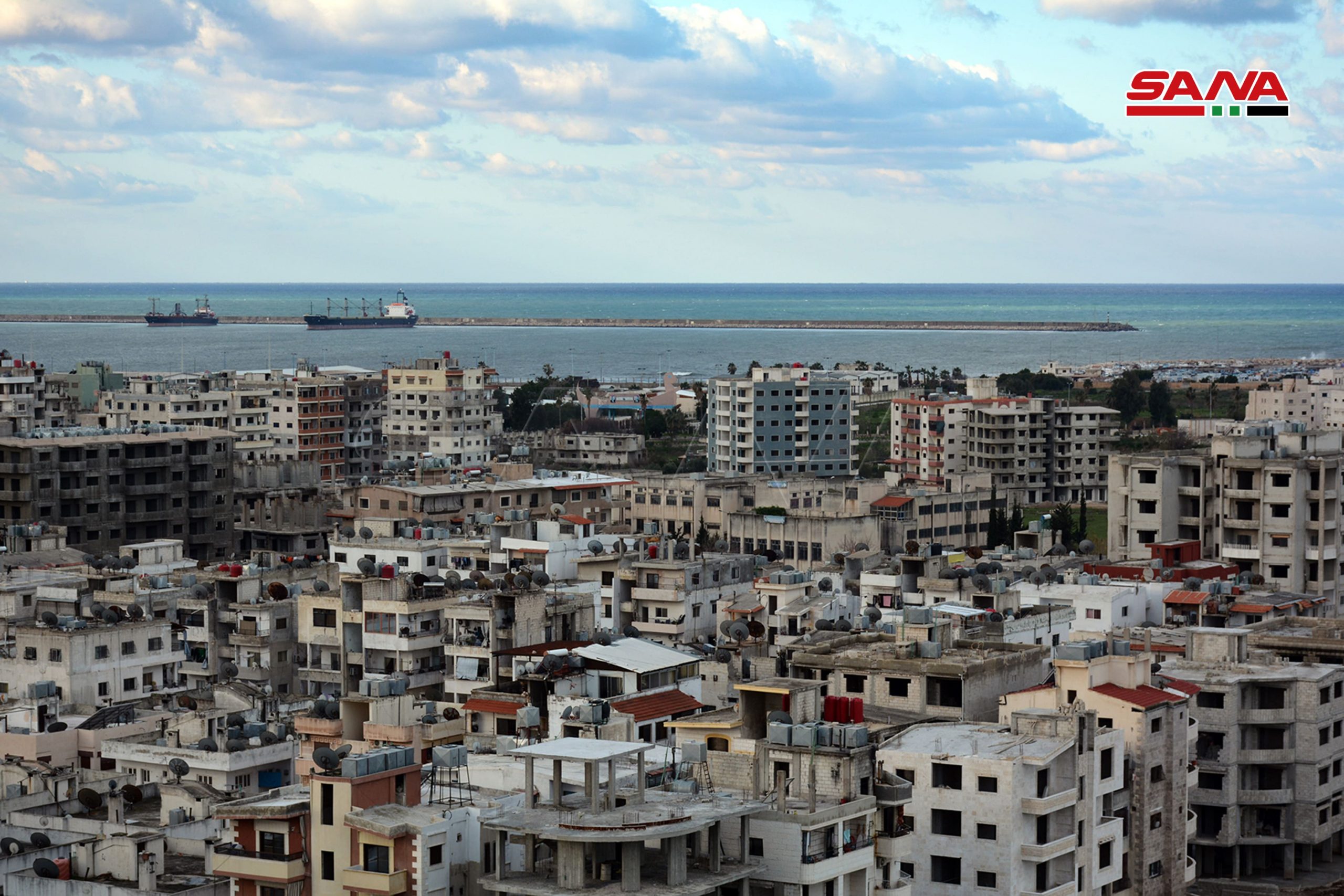 Arriba a puerto sirio de Tartús gigantesco carguero francés
