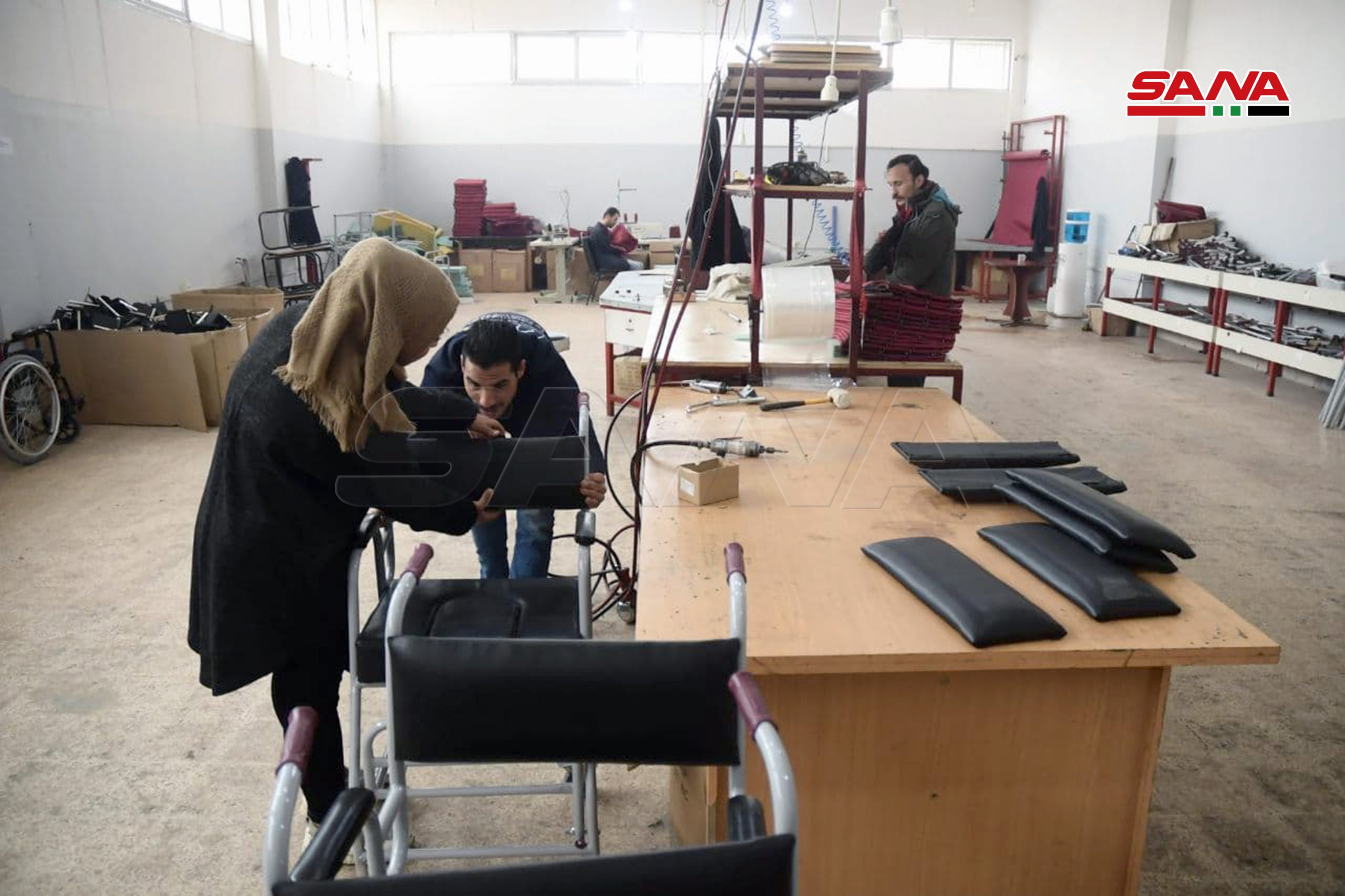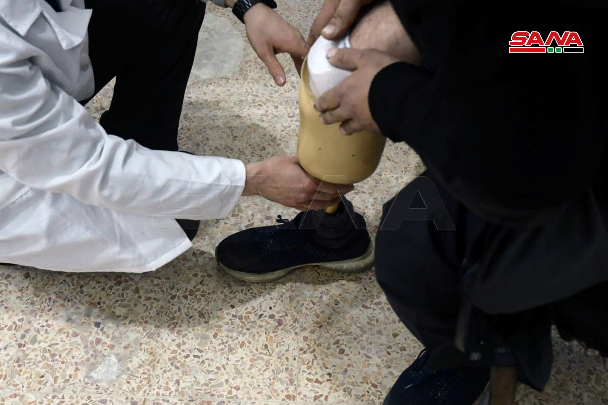 Zainab Khoula, fundadora y presidenta de la junta directiva de la asociación, explicó a SANA que el trabajo continúa para producir y distribuir prótesis después de la rehabilitación del edificio de la asociación que fue destrozado y destruido como resultado del terrorismo en el barrio de Masaken Hanano.