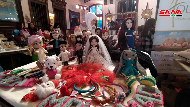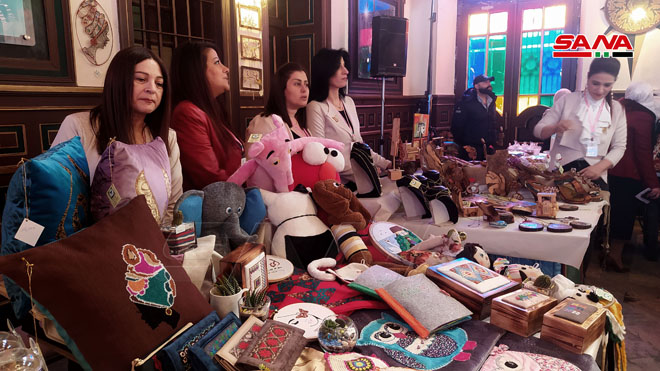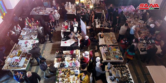 Damasco, 7 mar (SANA) Con motivo del Día Internacional de la Mujer, arrancó hoy el mercado (Productos sirios), organizado por la Asociación (Artesanía siria), uno de los programas de la Fundación Siria para el Desarrollo, en la estación de Hijaz en Damasco.