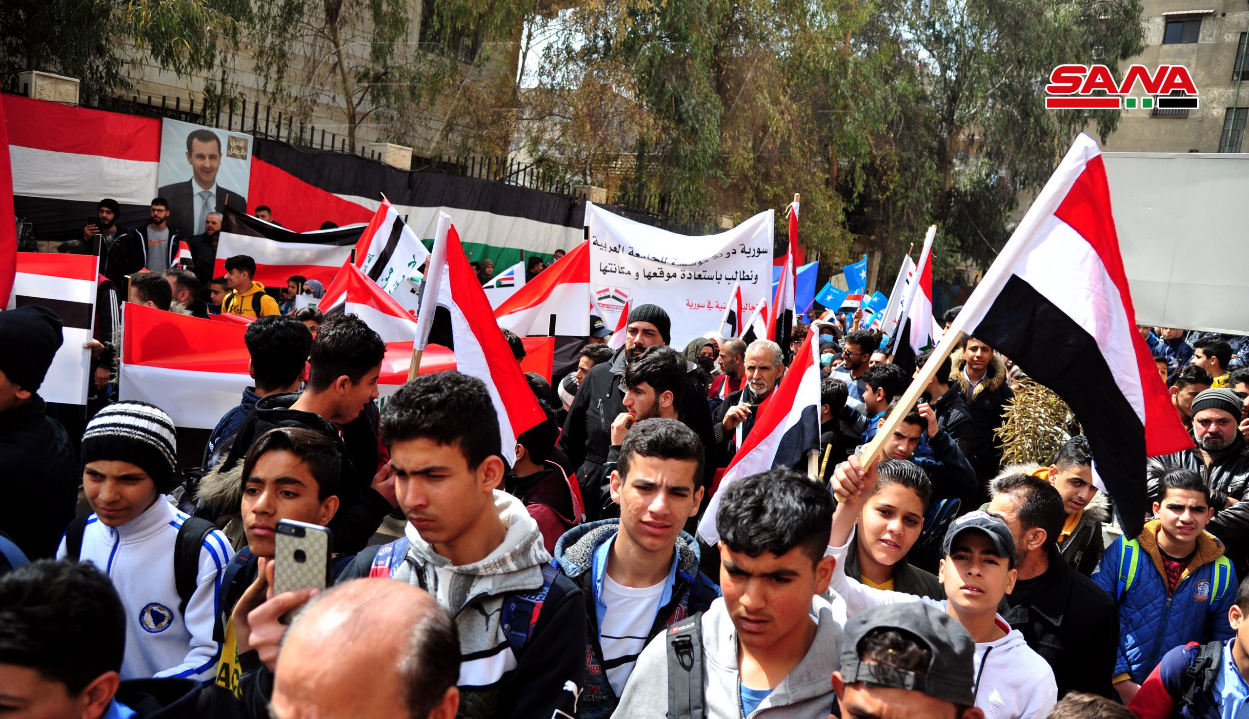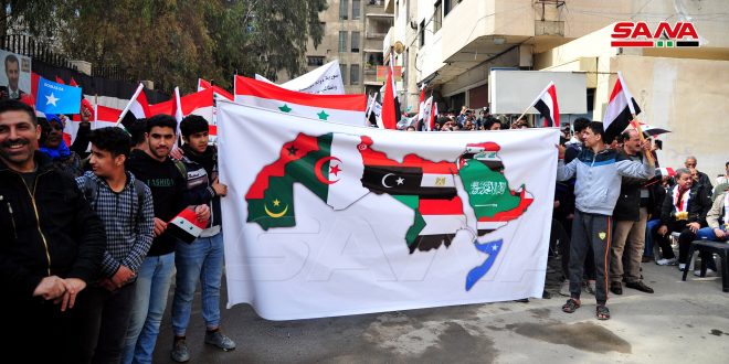 Damasco, 8 mar (SANA ) El Foro Nacional Iraquí, en coordinación con varias comunidades árabes que residen en Siria, organizó un mitin en la ciudad de Jaramana, cerca de Damasco para exigir el regreso de Siria a la Liga de Estados Árabes.