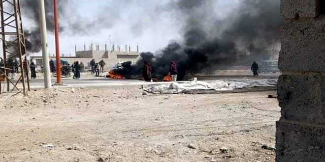Indicaron que los habitantes de las aldeas de Ain al-Hara, Waab al-Shouk y al-Sirb se unieron a las manifestaciones y bloquearon la carretera entre Abyad, Hasakeh y Raqa con neumáticos quemados y piedras, y denunciaron el saqueo del petróleo y los bienes y sus acciones hostiles diarios contra civiles.