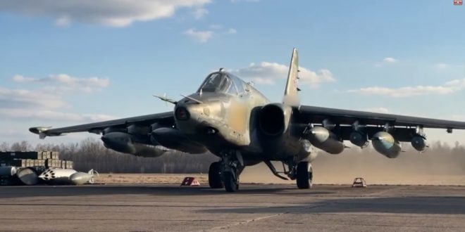 Moscú, 14 mar (SANA) El Ministerio de Defensa ruso publicó video que muestran dos par de cazabombarderos Su-25 destruyendo un depósito de municiones del ejército ucraniano.