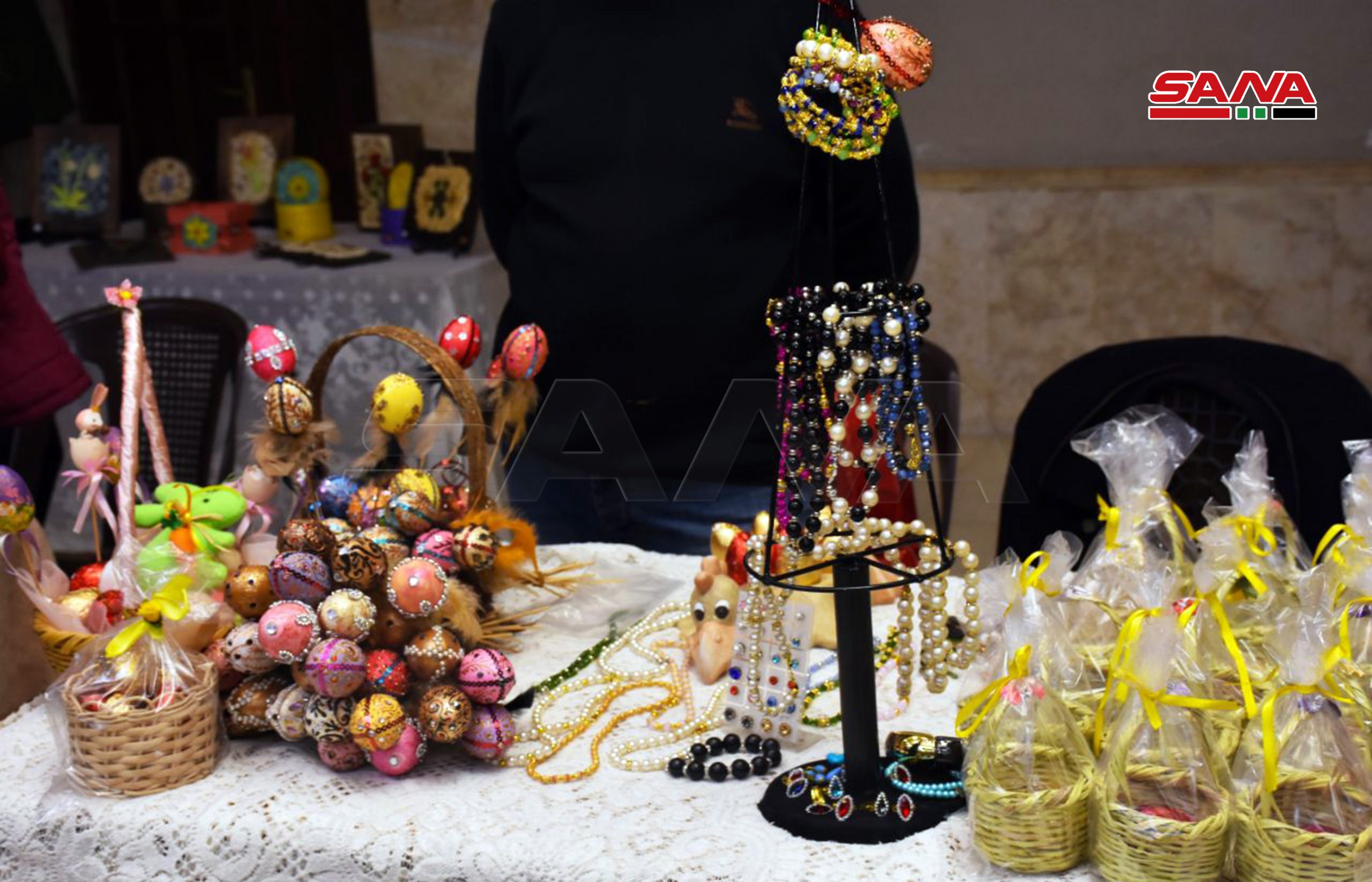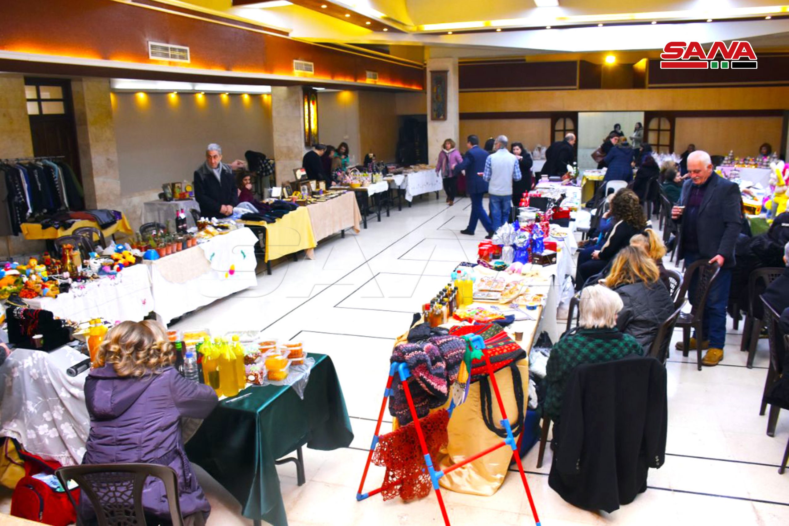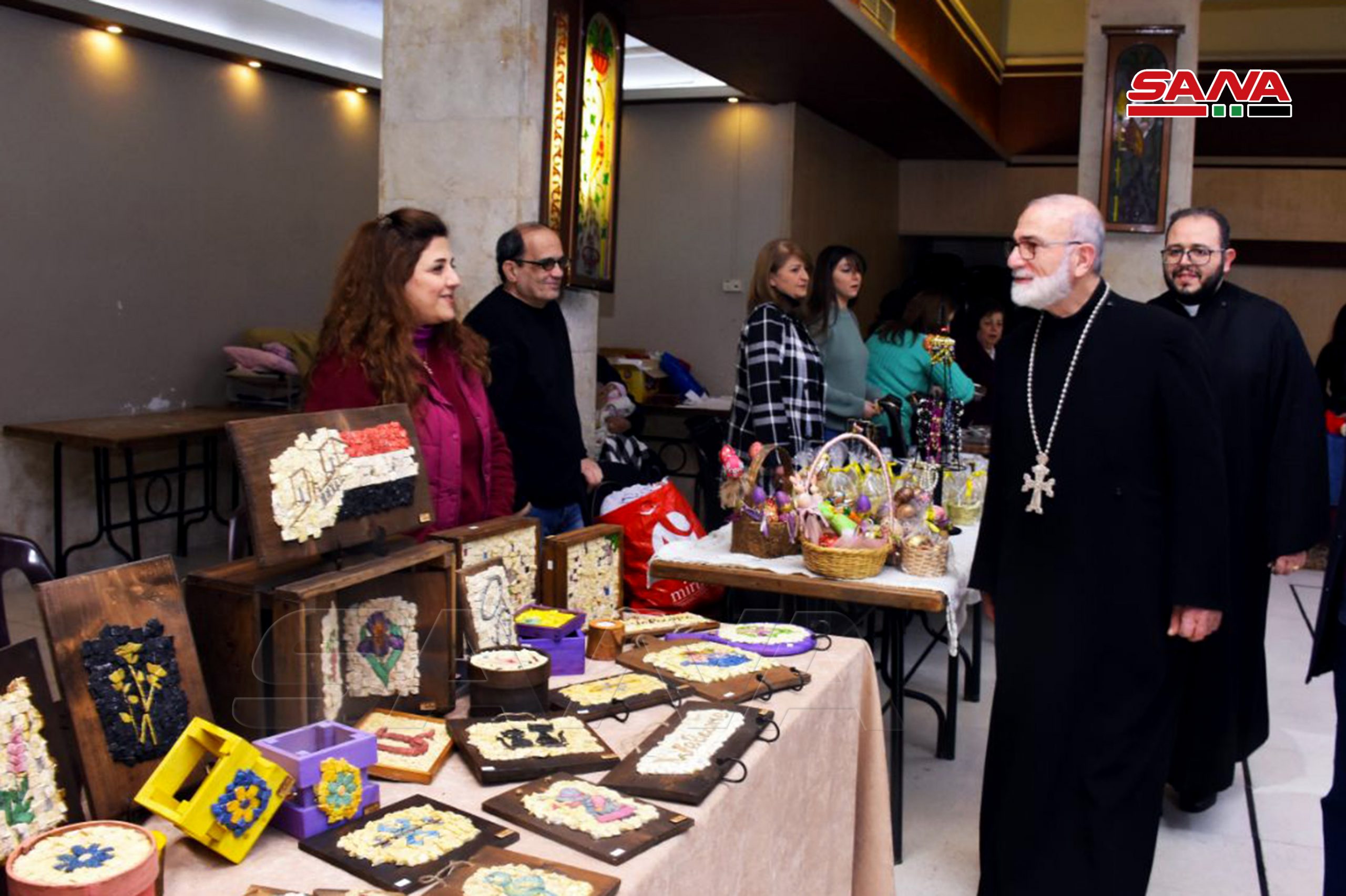 Alepo, 18 mar (SANA) La Iglesia de la Santa Cruz en la provincia de Alepo/Siria acogió este viernes una feria de productos hechos a manos de 30 mujeres con motivo de las fiestas del Educador, la Madre y la Pascua.