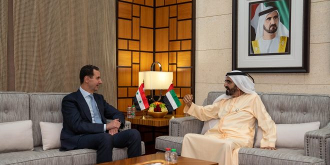 Dubái, 18 mar (SANA) El presidente Bashar Al-Assad realizó una visita a los Emiratos Árabes Unidos y se reunió con Su Alteza el Jeque Mohammed bin Rashid Al Maktoum, Vicepresidente y Primer Ministro de los EAU y Gobernante de Dubái.
