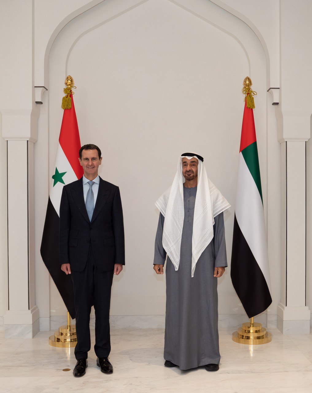 El jeque bin Zayed enfatizó la necesidad de la retirada de todas las fuerzas extranjeras presentes ilegalmente en el territorio sirio y expresó el interés de su país por fortalecer la cooperación con Siria en las áreas que logran las aspiraciones de los dos pueblos hermanos.