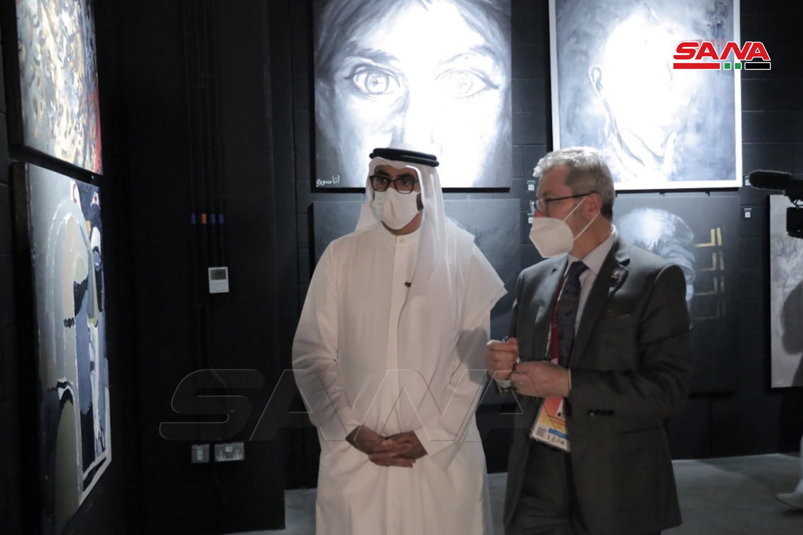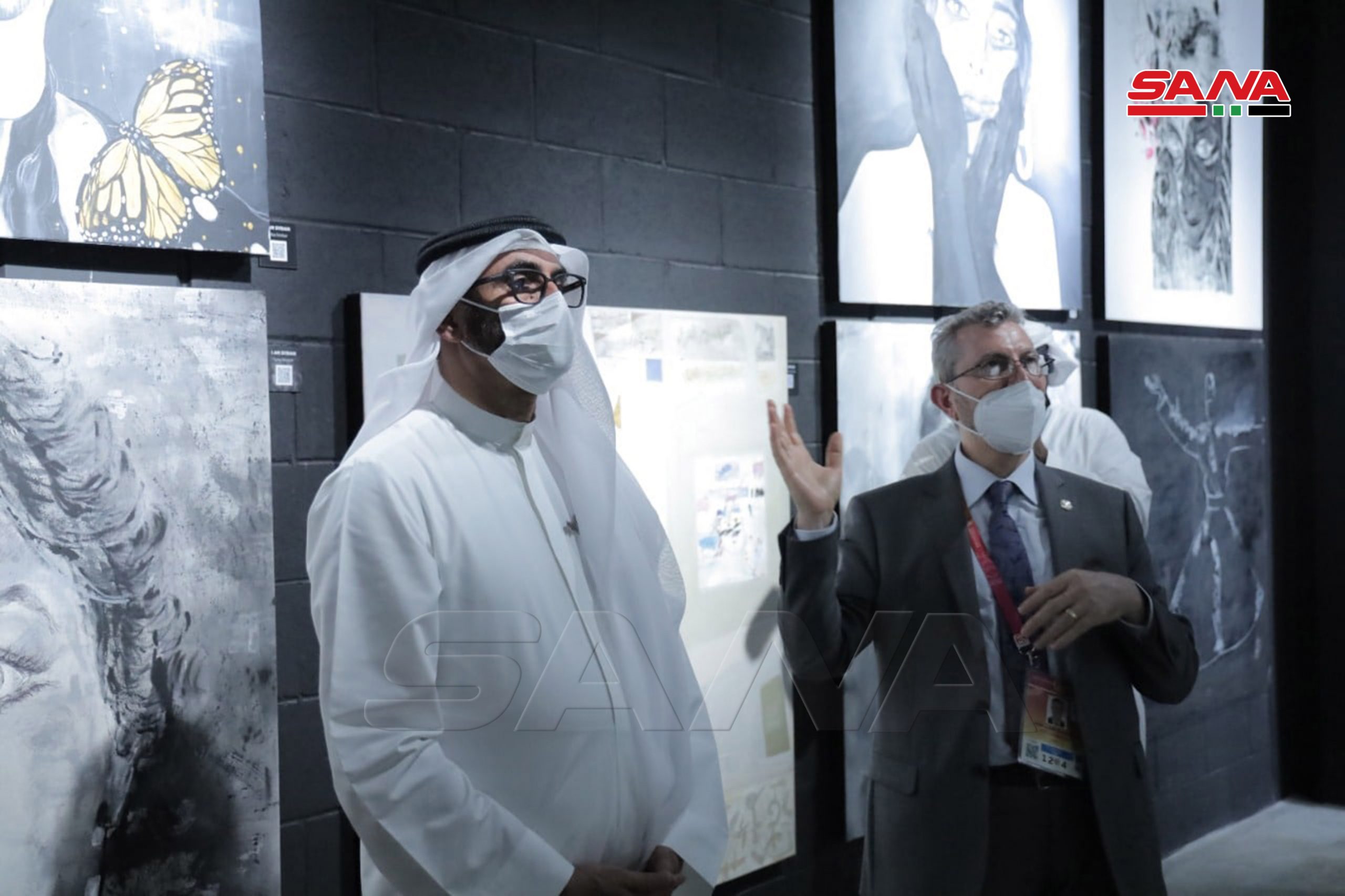 Asimismo, la delegación expresó su admiración por la exposición de arte colectiva organizada por el pabellón bajo el título “Soy el Sirio”, donde cada pintura presentada representa una cara de Siria, asimismo la idea de la exposición se basa en el hecho de que cada sirio es parte de la conciencia colectiva de que todos somos iguales e interconectados y que juntos construiremos un futuro más brillante para Siria y el mundo.