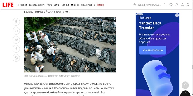 La verdad es que la misma fue tomada por Sergei Ponomarev tras el escalofriante ataque terrorista contra una escuela en Beslán en 2004, donde se ven los cuerpos de niños.