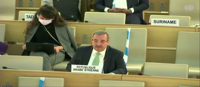 Ginebra, 25 mar (SANA) El representante permanente de Siria ante las oficinas de Naciones Unidas en Ginebra, el embajador Husam Eddin Ala, afirmó durante una sesión del Consejo de Derechos Humanos, que el ocupante israelí continúa sus crímenes y graves violaciones de los derechos del pueblo palestino y de la población del Golán sirio ocupado, al intensificar sus actividades coloniales, apoderarse de las tierras y saquear los recursos naturales.