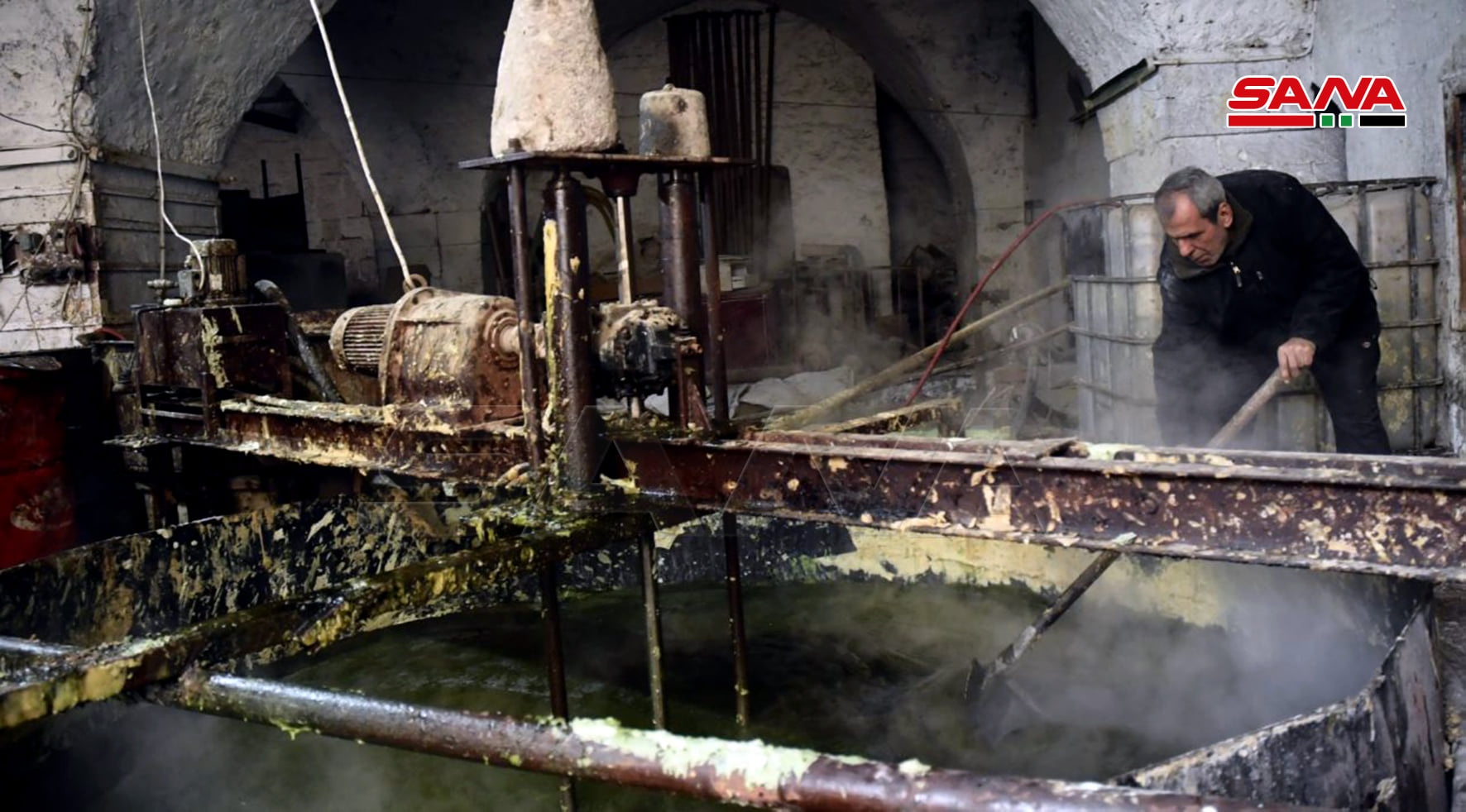 En Bab al-Nasr y al otro lado de una calle antigua cubierta con arcos de piedra, se escucha el ruido de los trabajadores en una casa antigua que fue transformada en una planta de fabricación de jabón.
