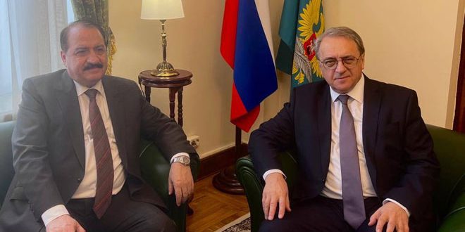Moscú, 1 abr (SANA) El representante especial del presidente de Rusia para Medio Oriente y África, y viceministro de Exteriores, Mikhail Bogdanov, examinó con el Embajador de Siria en Moscú, Riad Haddad, varios temas internacionales y regionales.