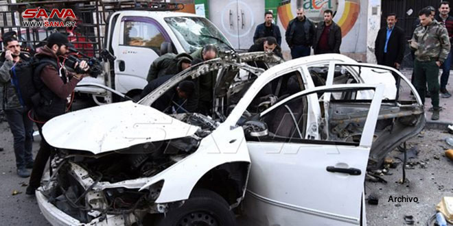 Damasco, 6 abr (SANA) Dos personas resultaron lesionadas hoy por la explosión de una bomba en su vehículo en el sur de la ciudad de Damasco.