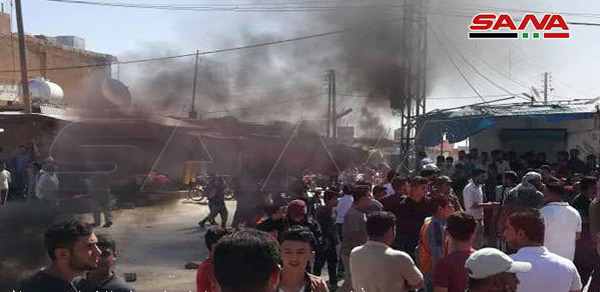 Hasakeh, 09 abr (SANA) Armados de las llamadas Fuerzas Democráticas de Siria, apoyadas por el ocupante estadounidense, rodearon la panadería al-Baath en la ciudad de Qamishli y privaron los ciudadanos del pan, incluidos a los trabajadores de la misma panadería.