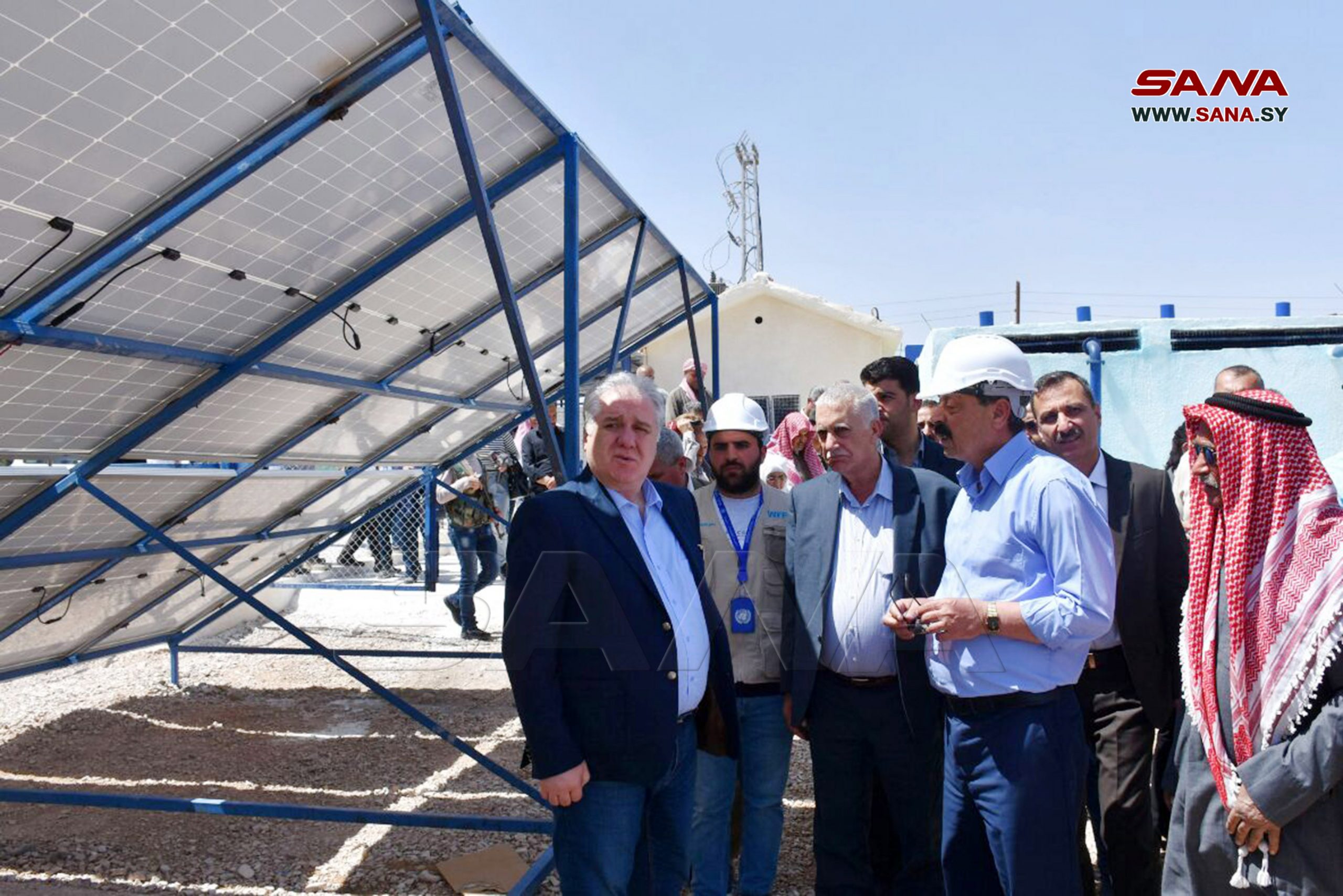 Bassam Barsik, gobernador de Homs, dijo en declaraciones a los periodistas que el proyecto viene en marco de la cooperación entre las autoridades pertinentes y los organismos internacionales para animar a la población a volver a sus tierras y así incrementar la producción agrícola. Señaló que todas las bombas de agua, verticales y horizontales, son alimentadas por electricidad obtenida de los paneles solares.
