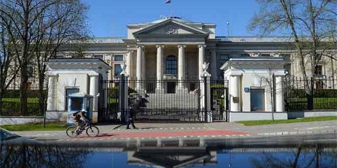 Varsovia, 11 abr (SANA) La Embajada de Rusia en Varsovia envió una nota de protesta al Ministerio de Exteriores de Polonia por la incautación de un edificio propiedad de la Embajada rusa en Varsovia.