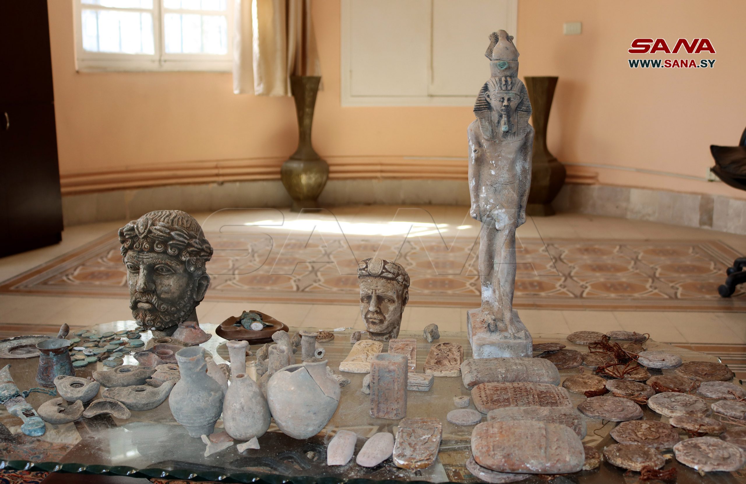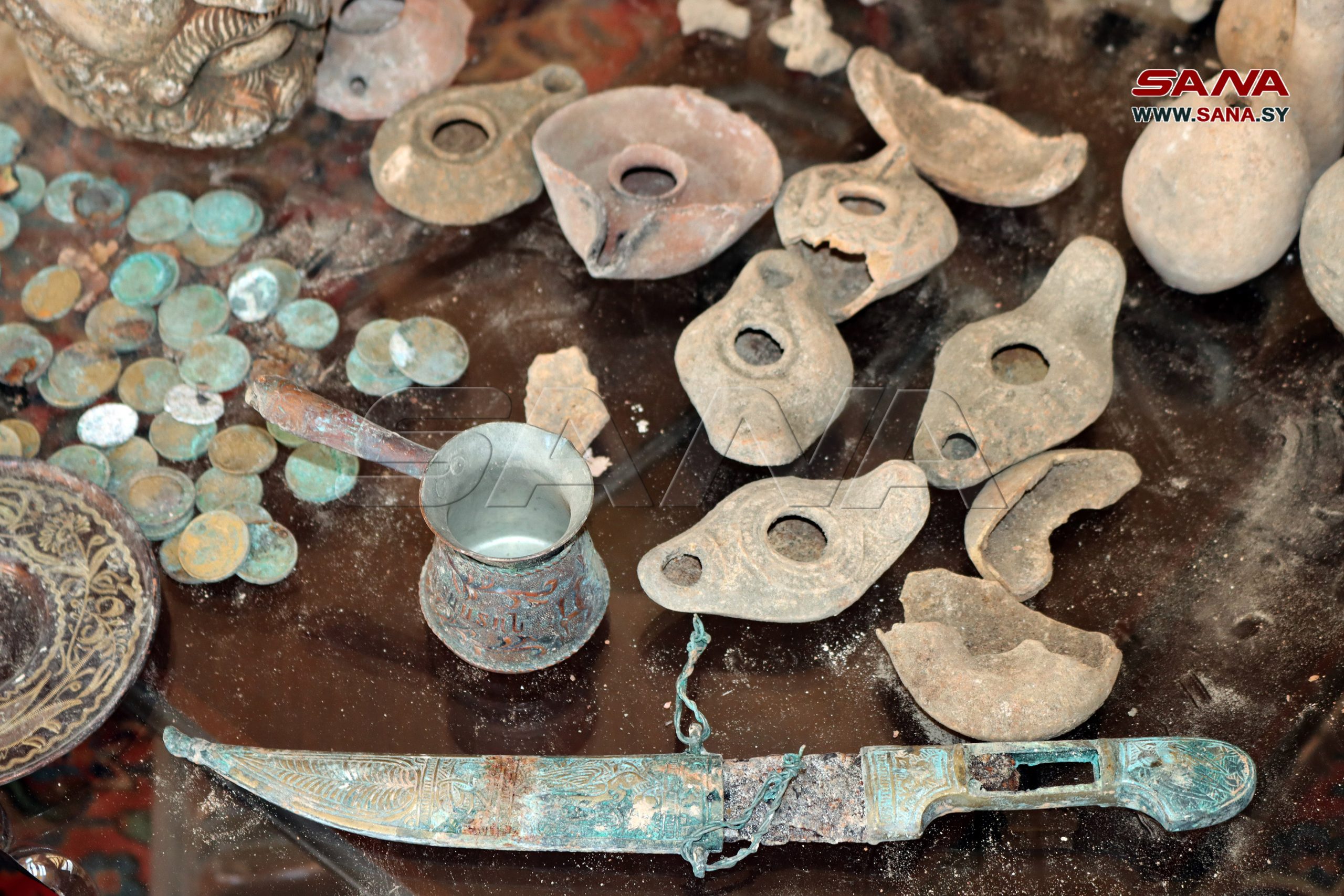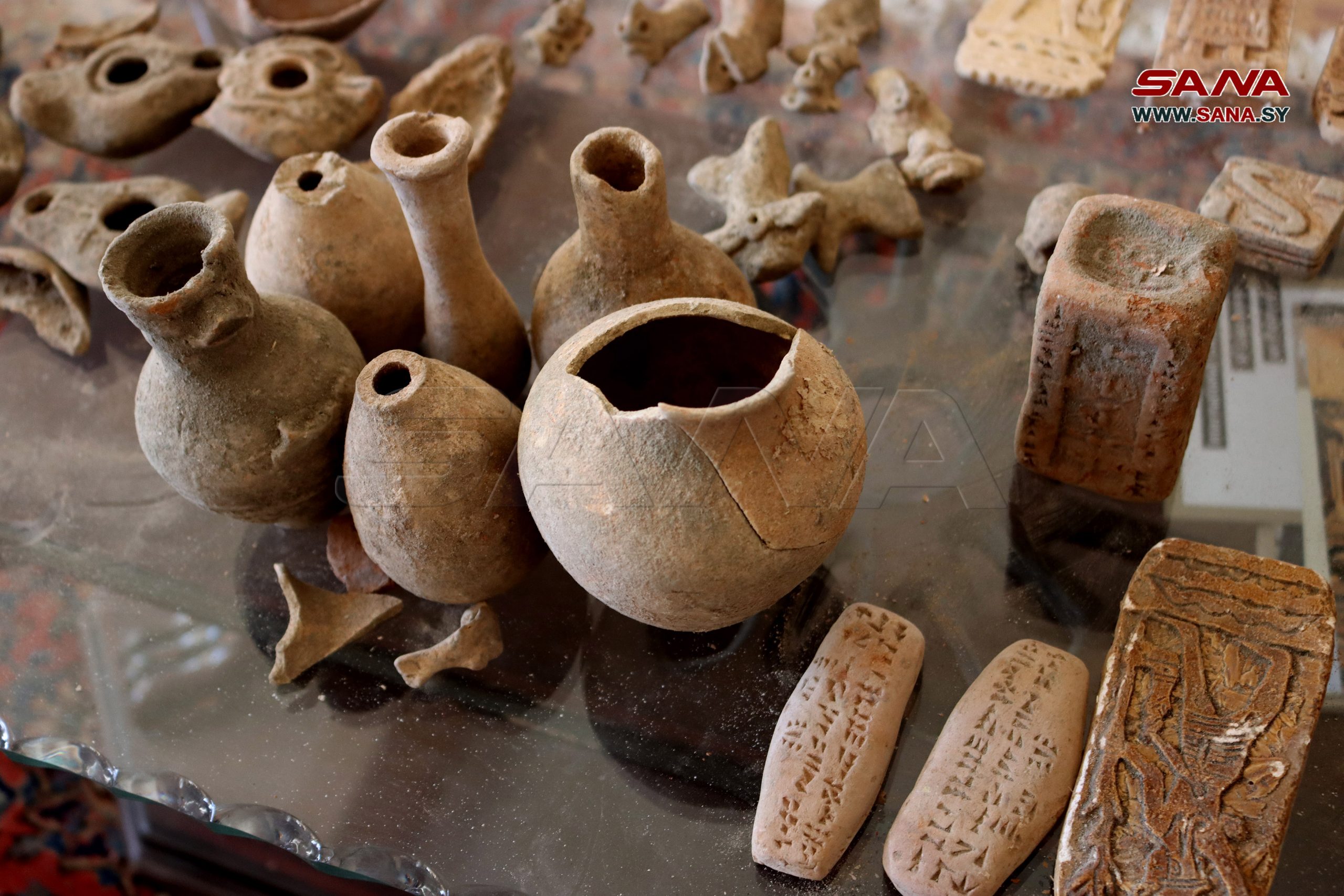 Homs, 13 abr (SANA) Piezas arqueológicas encontradas por trabajadores durante sus labores de retirar escombros en la ciudad central siria de Homs. Algunas de las piezas remontan de la Edad de Bronce y otras de la época bizantina…