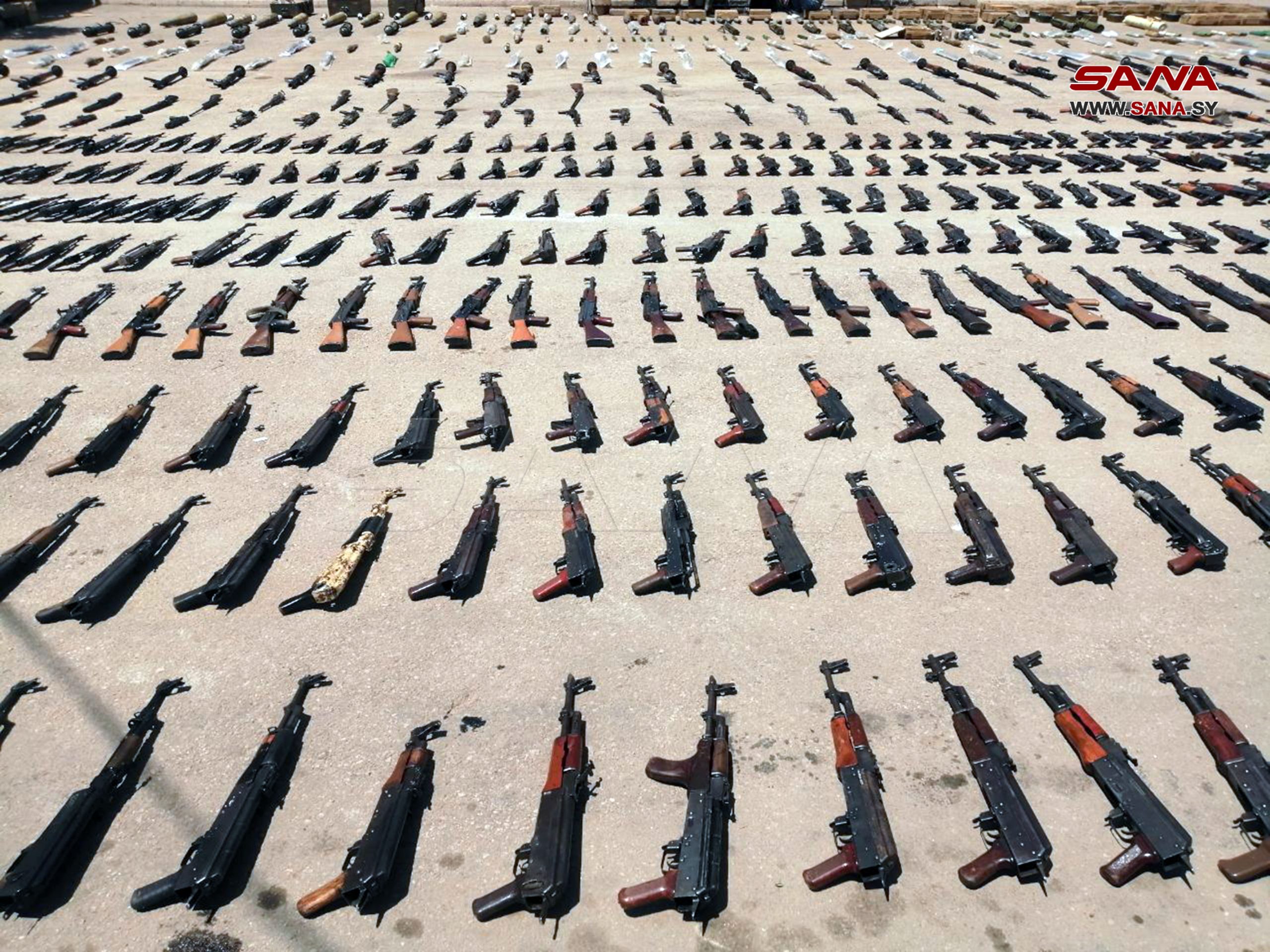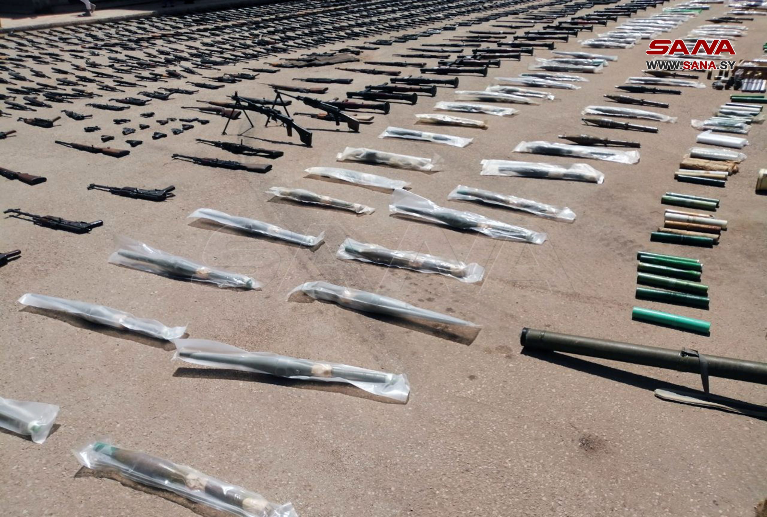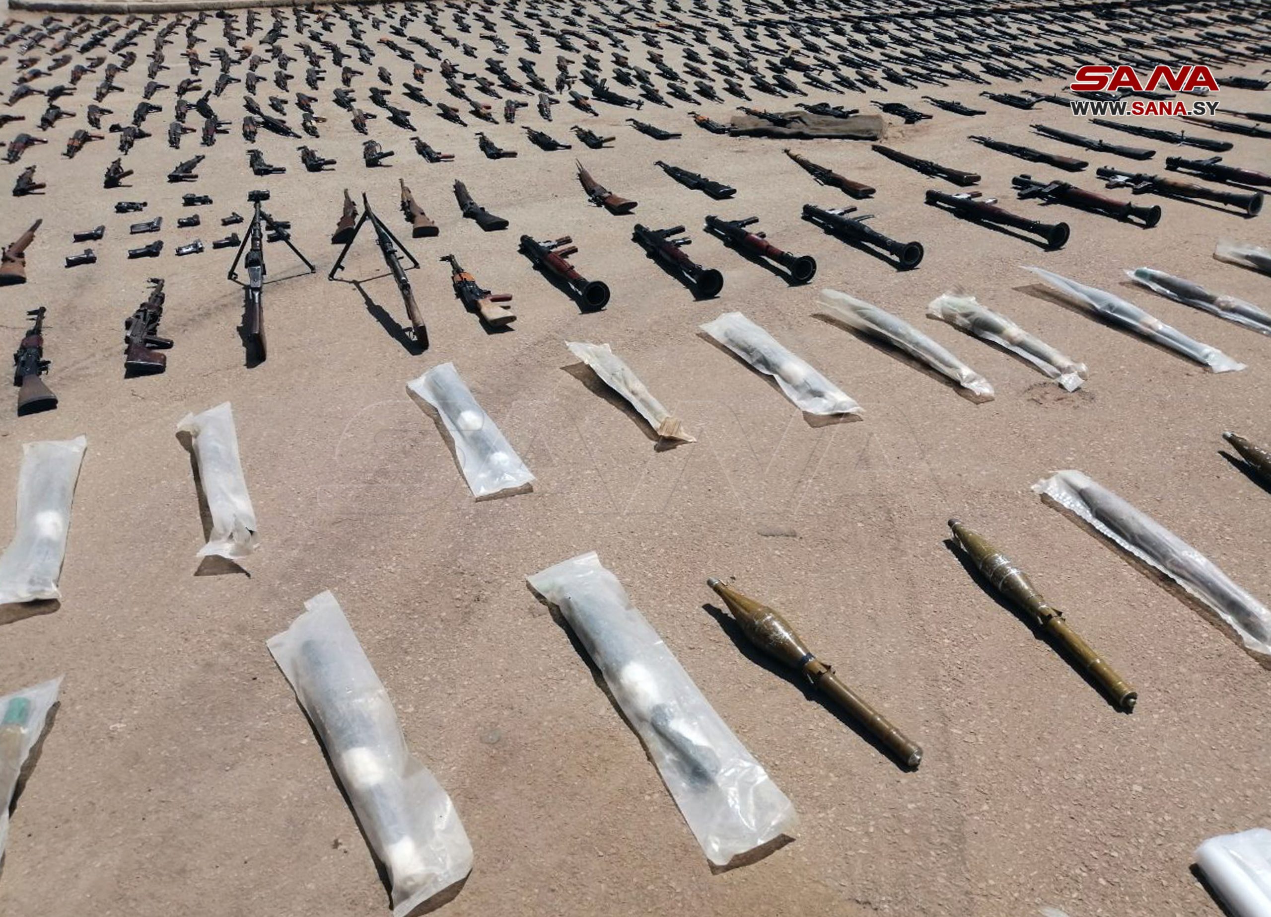 Deraa, 20 abr (SANA) Las autoridades competentes confiscaron hoy grandes cantidades de armas remanentes de los grupos terroristas armados.